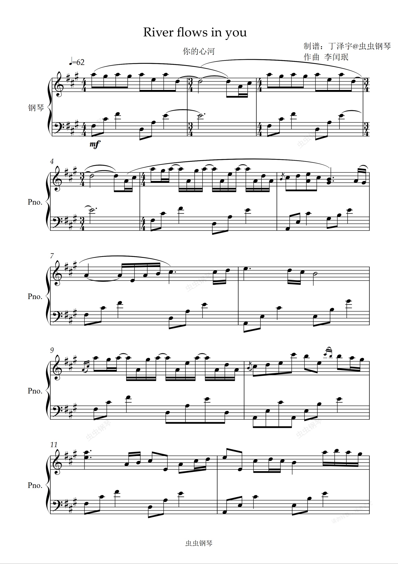 钢琴谱:River Flows In You-你的心河 钢琴谱