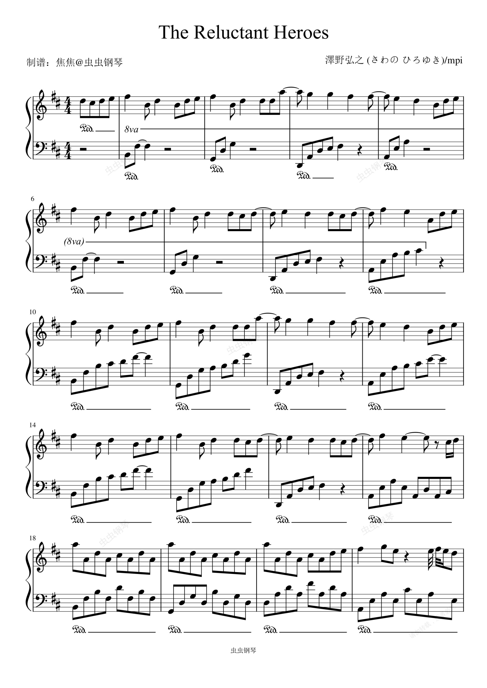 钢琴谱:The Reluctant Heroes - 澤野弘之 (さわの ひろゆき)/mpi