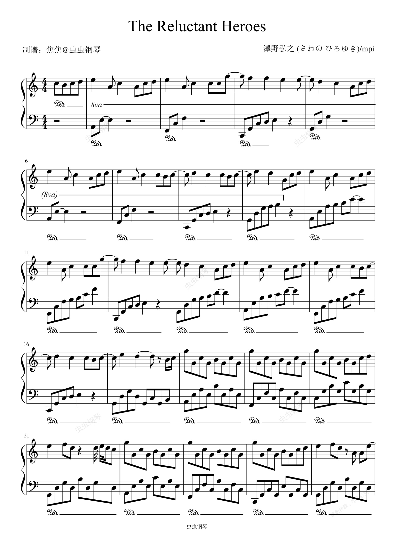 钢琴谱:The Reluctant Heroes - 澤野弘之 (さわの ひろゆき)/mpi