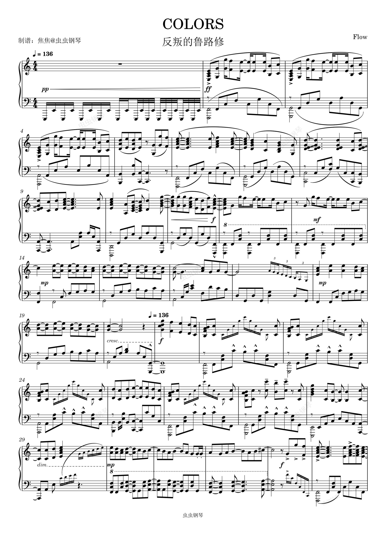 钢琴谱:COLORS(《Code Geass 反叛的鲁路修》OP)