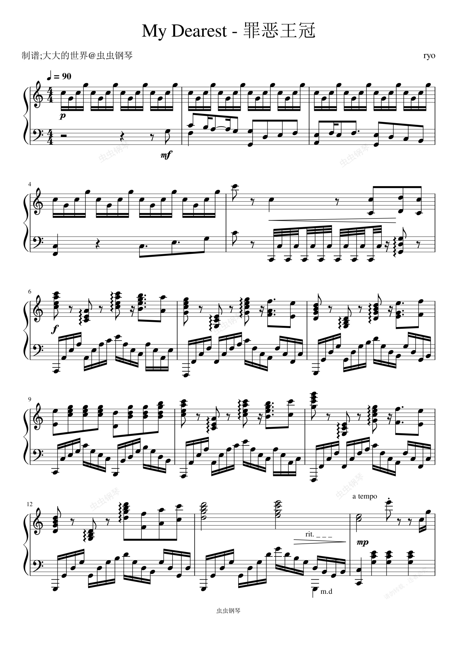 钢琴谱:My Dearest - supercell(罪恶王冠)