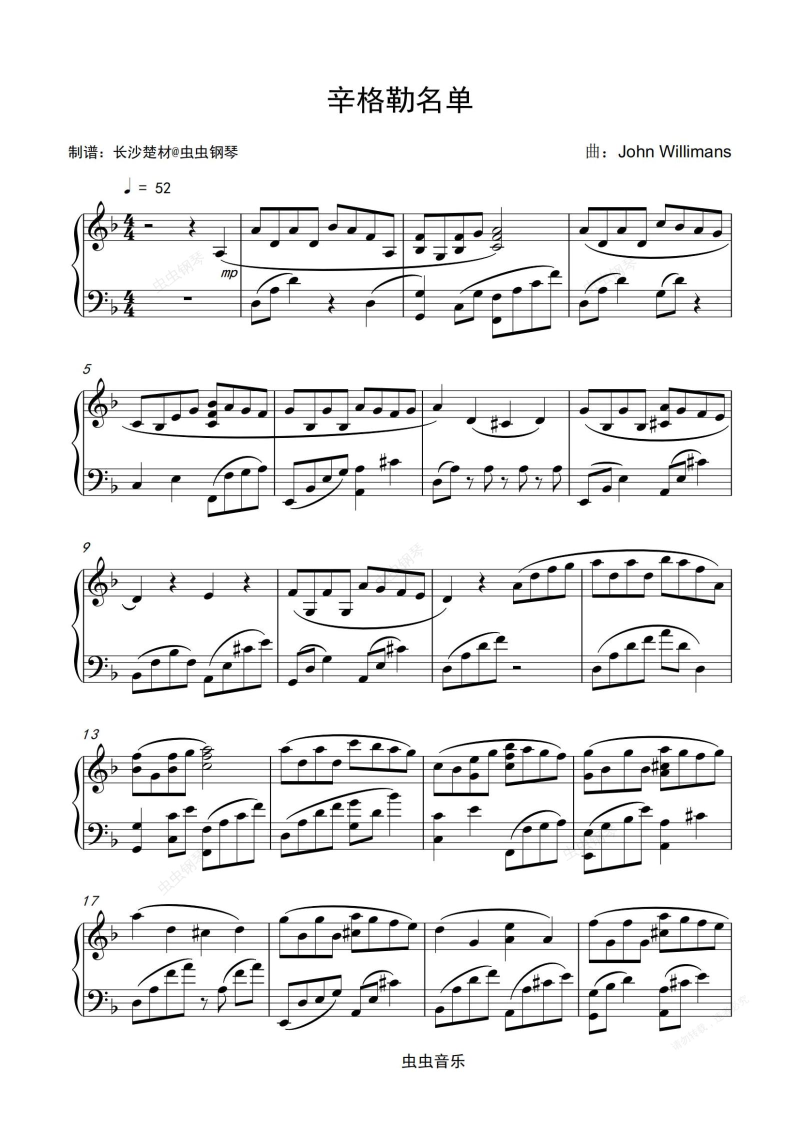 钢琴谱:辛德勒名单