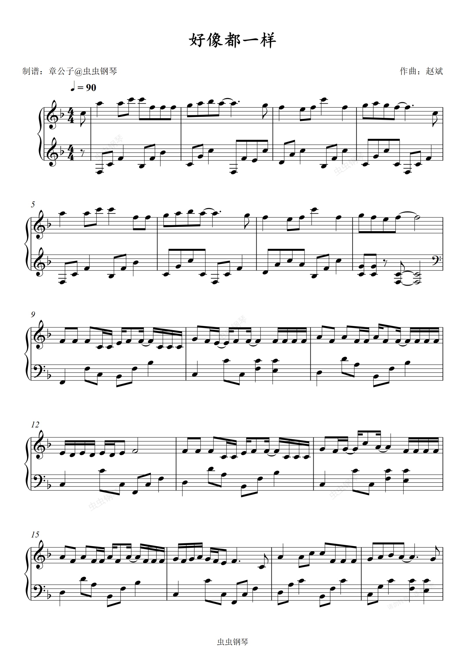 钢琴谱:好像都一样 《两个人的小森林》片尾曲 独奏谱原调F