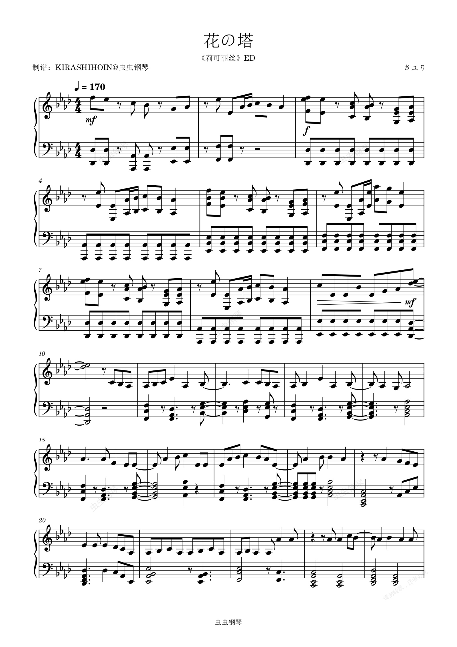 钢琴谱:花の塔(《莉可丽丝》ED/片尾曲)- さユり