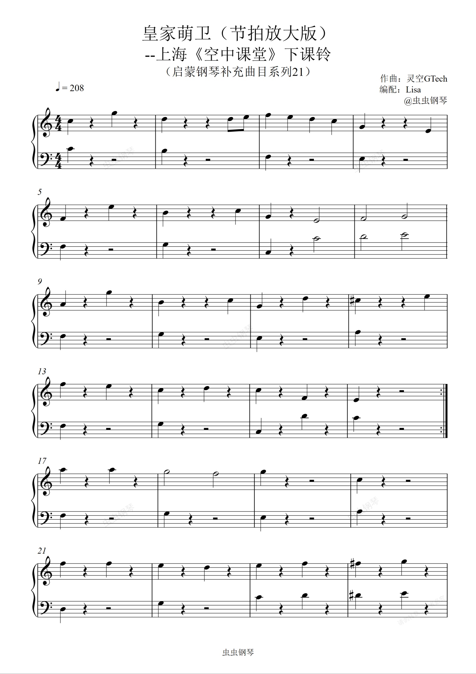 钢琴谱:皇家萌卫--上海《空中课堂》下课铃(小汤2水平)