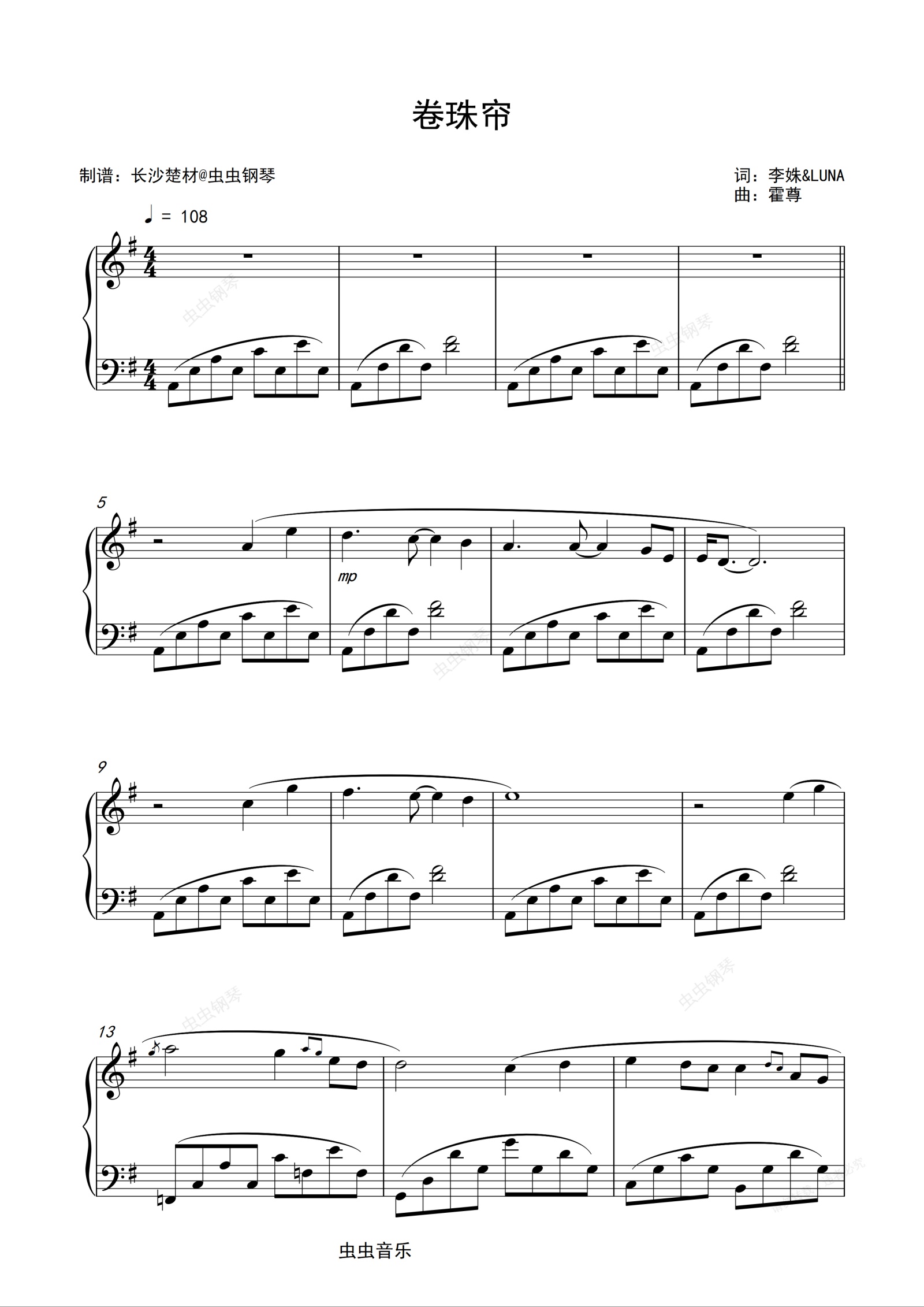 钢琴谱:卷珠帘