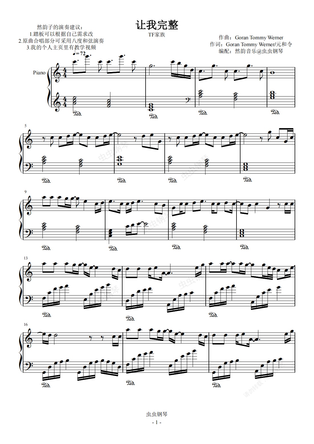 钢琴谱:【C调特惠】让我完整-TF家族 完美还原 Complete me