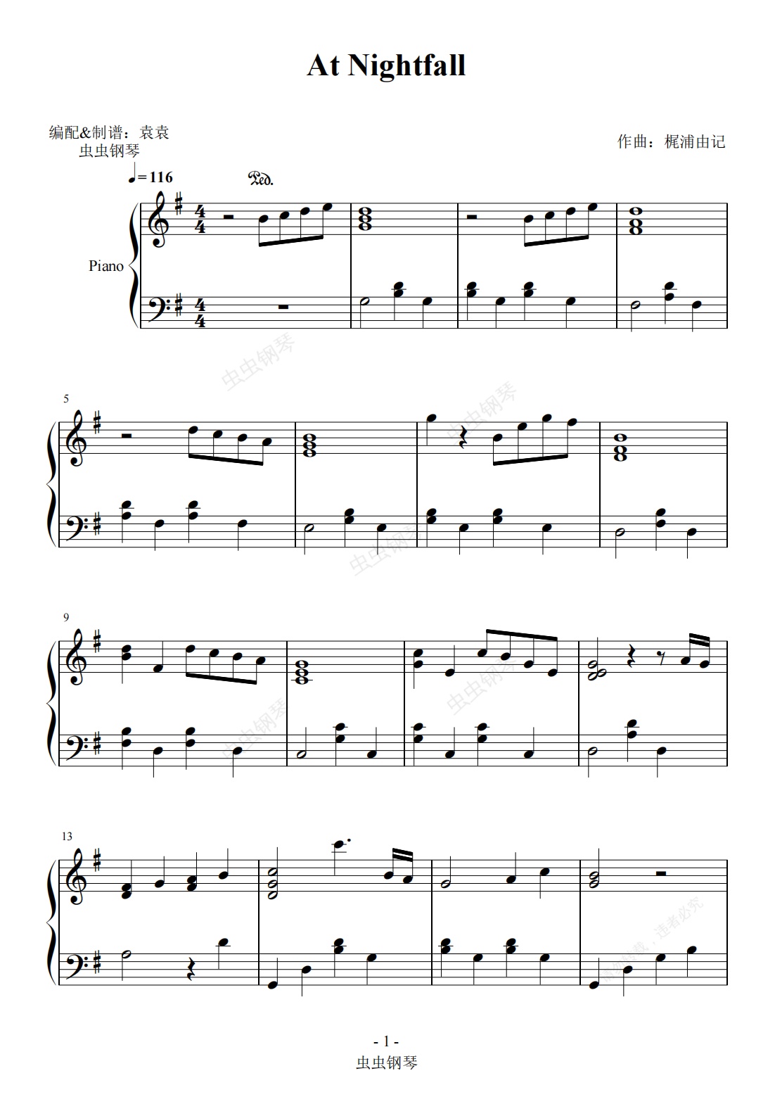 钢琴谱:刀剑神域ost At Nightfall 原调 简易演奏版