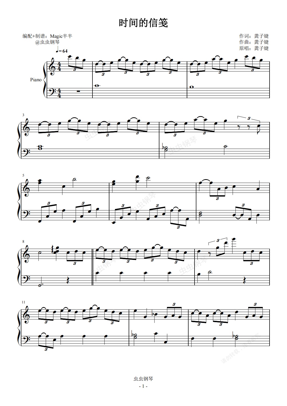 钢琴谱:时间的信笺 (某牛肉粉广告曲)