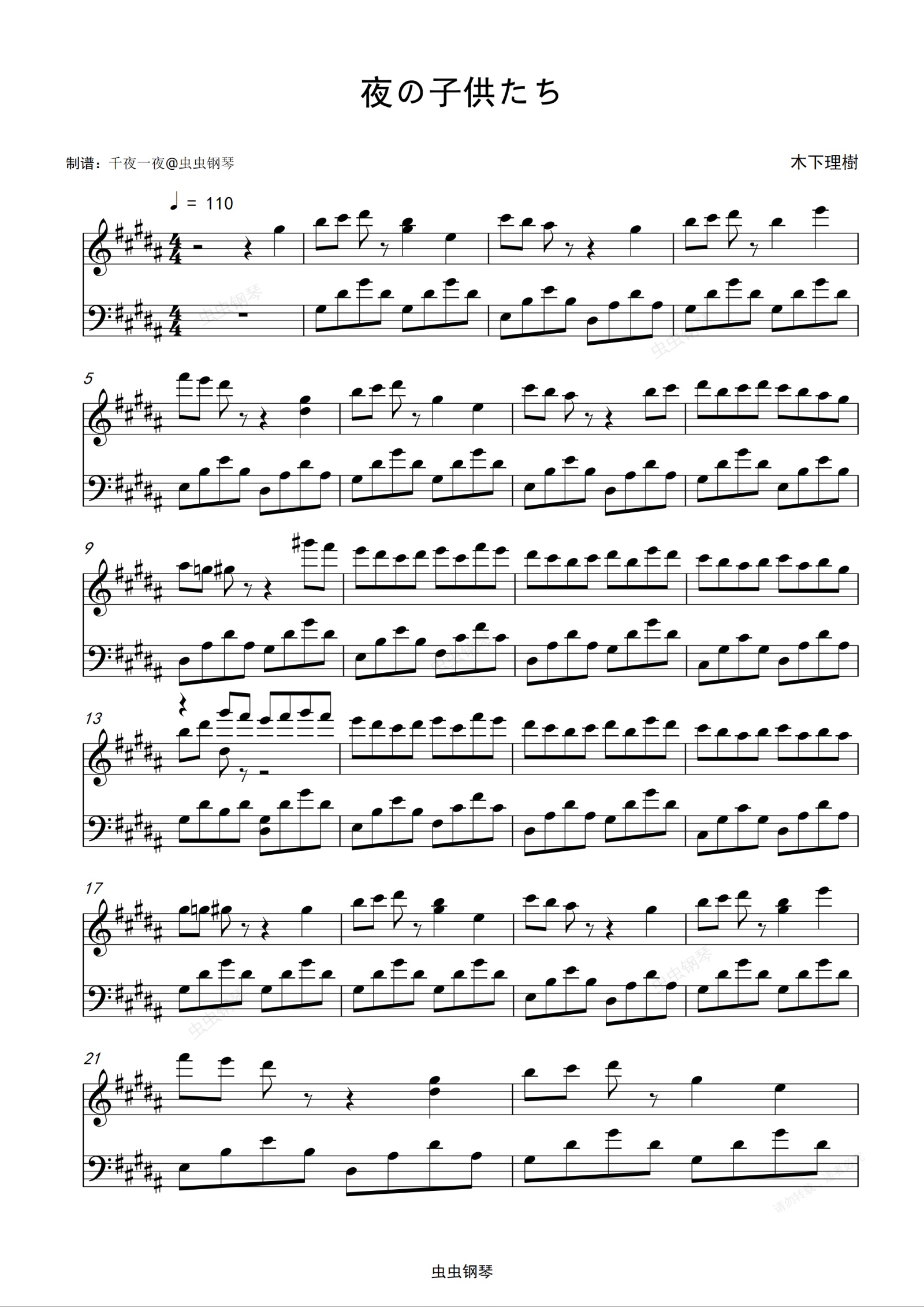 钢琴谱:夜の子供たち-夜晚的孩子们