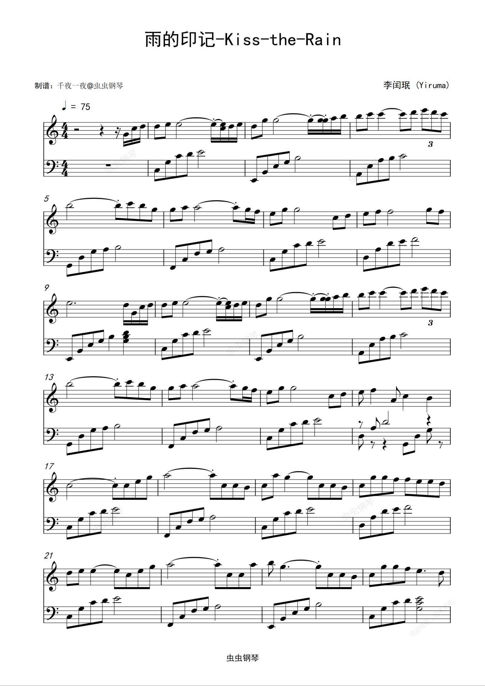 钢琴谱:雨的印记-Kiss-the-Rain