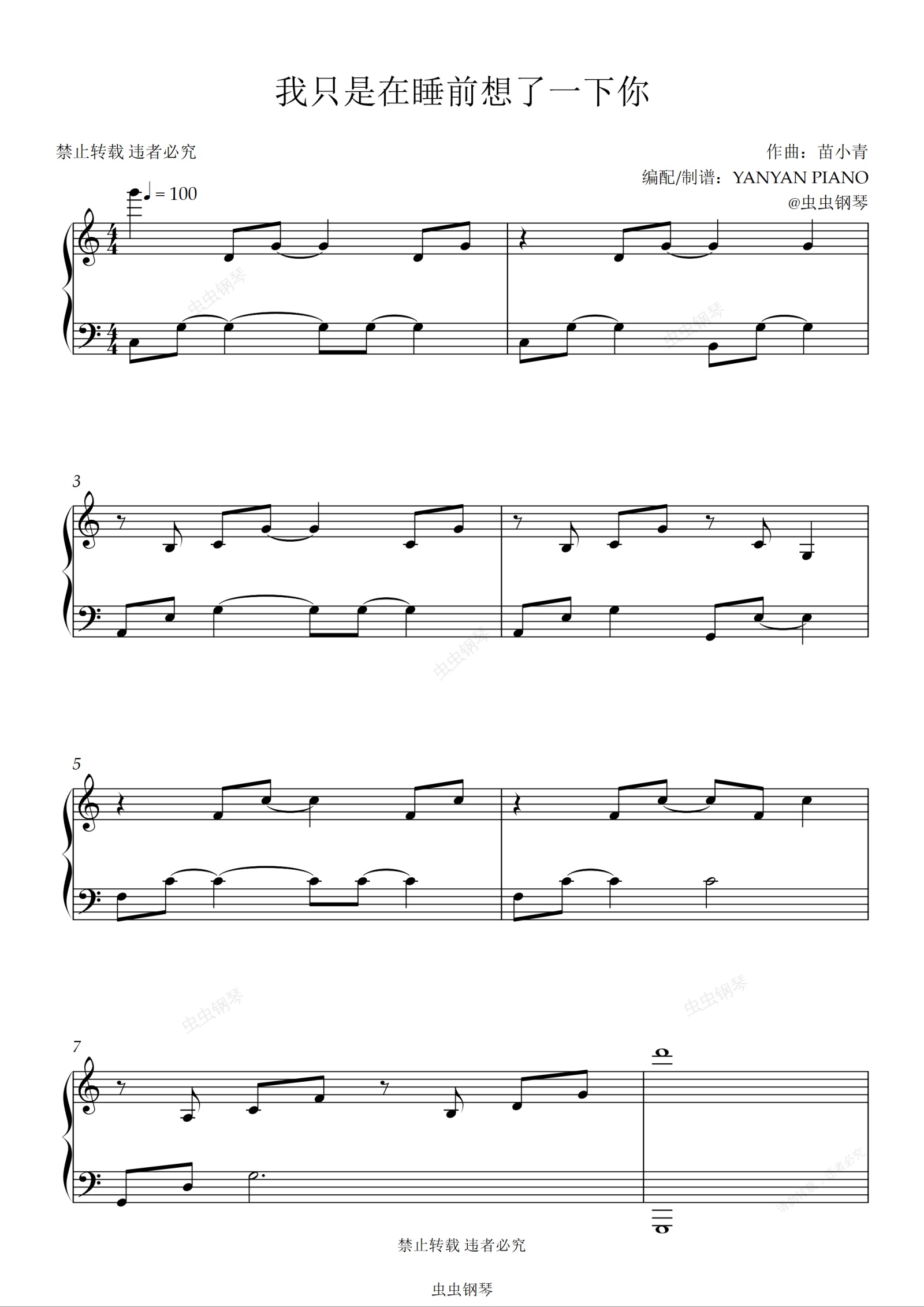 钢琴谱:好听易弹【我只是在睡前想了一下你】二珂