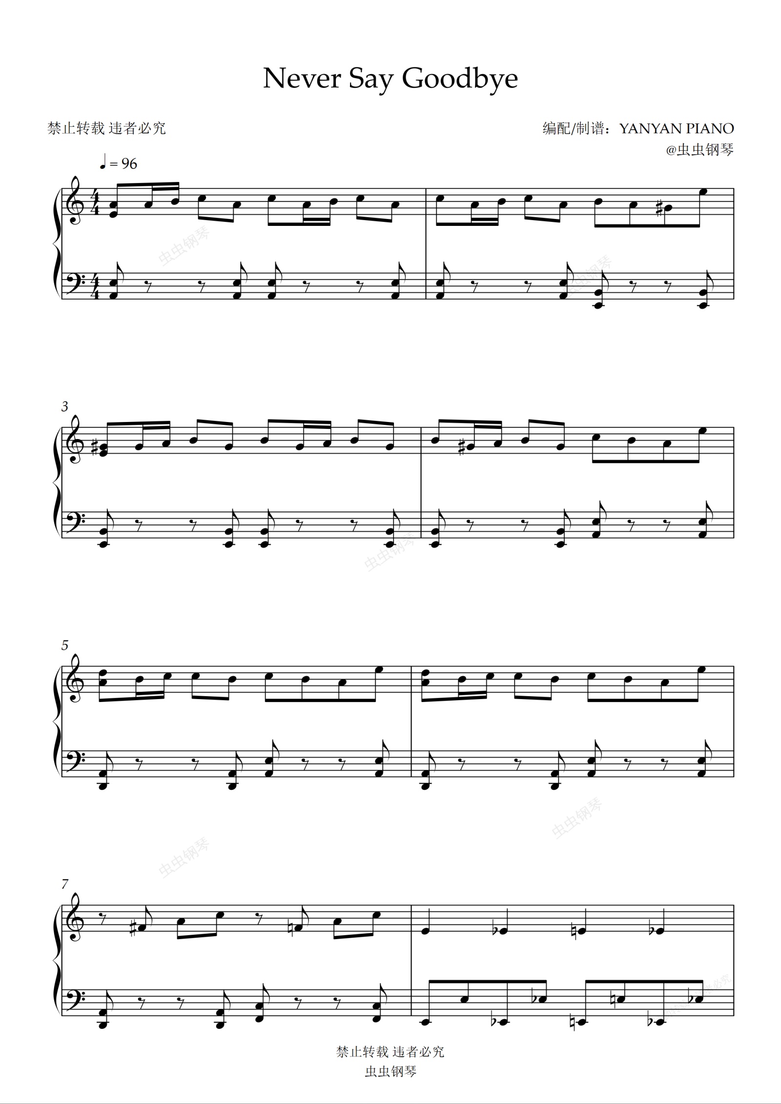 钢琴谱:好听易弹【Never Say Goodbye】Y-star【我的女孩/兄妹契约/My Girl】