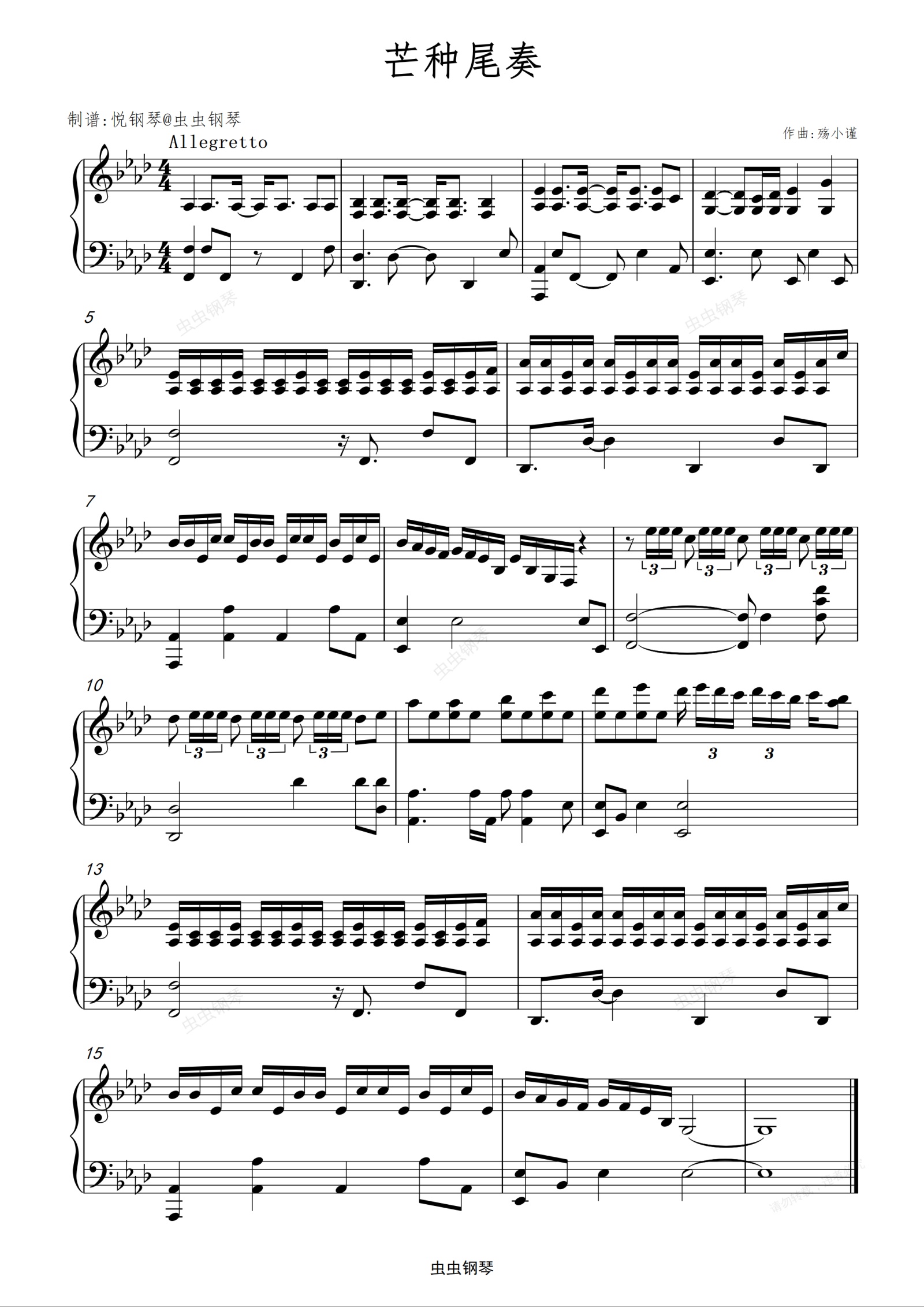 钢琴谱:芒种尾奏(免费乐谱) 阙诗听、赵方婧