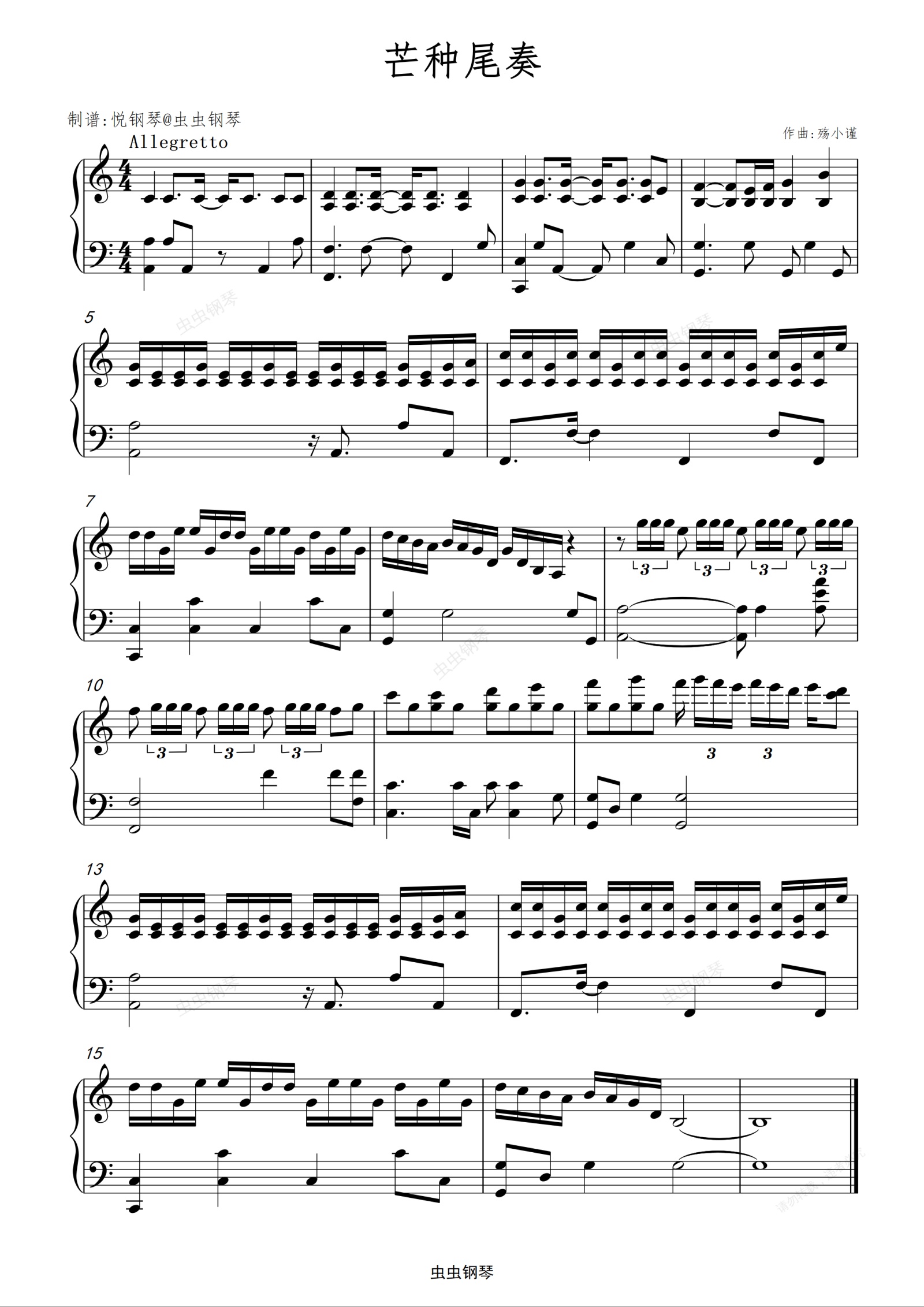 钢琴谱:芒种尾奏(免费乐谱) 阙诗听、赵方婧