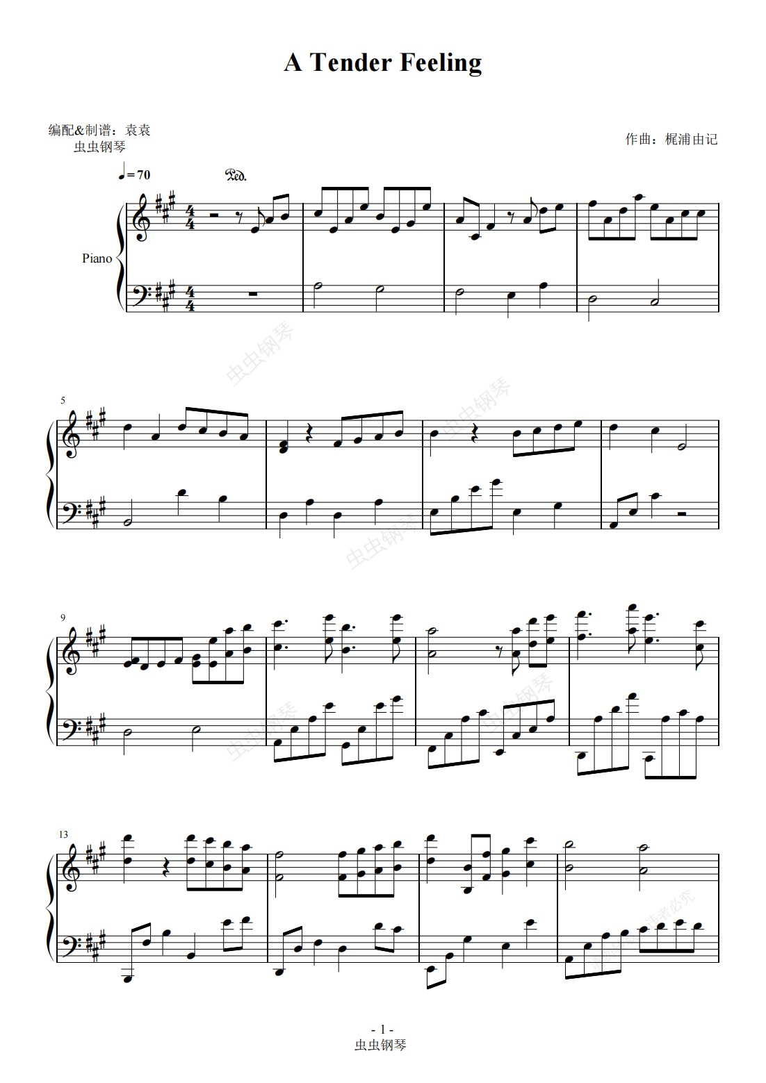 钢琴谱:刀剑神域 背景音乐 A Tender Feeling 原调 抒情演奏版
