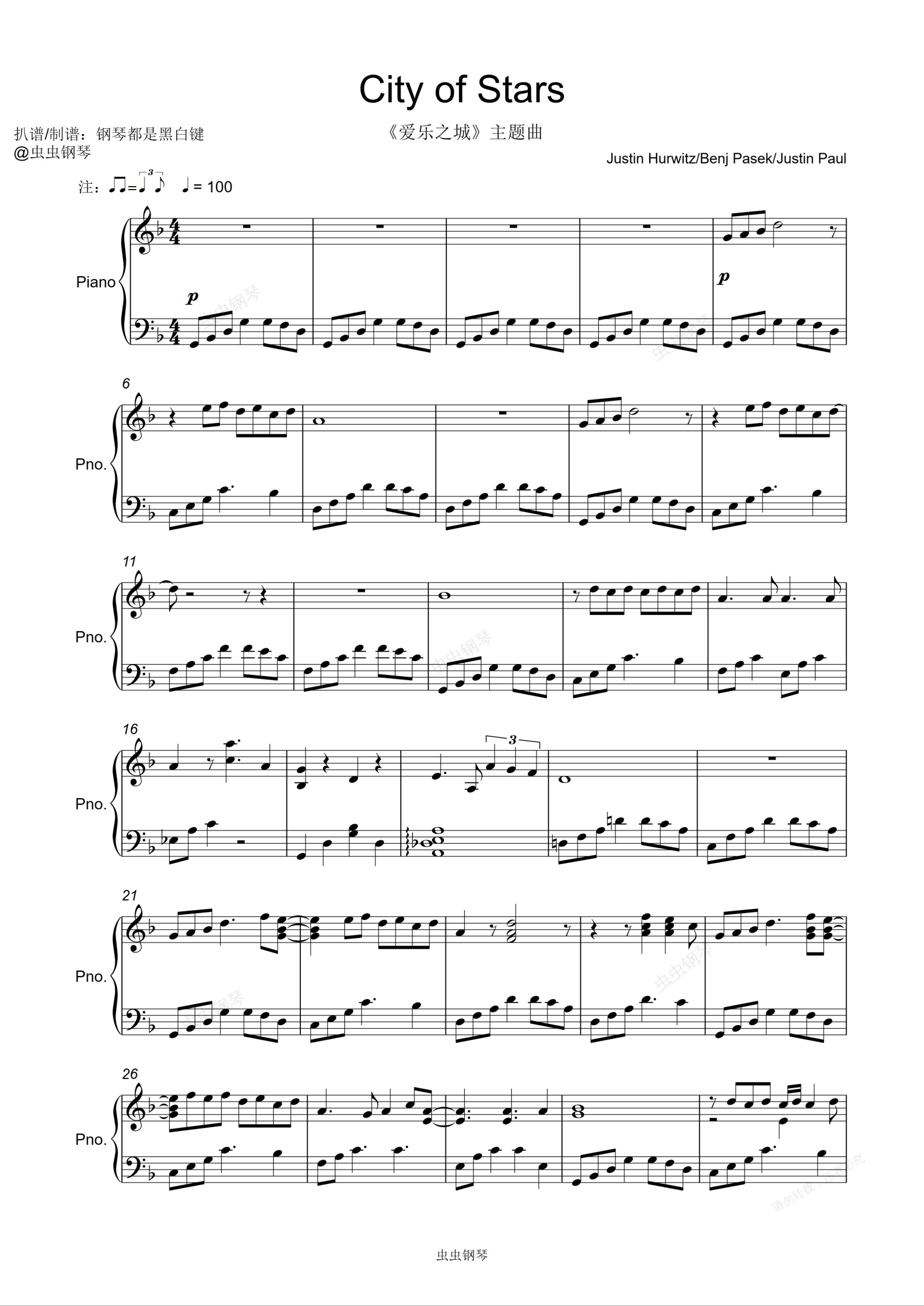 钢琴谱:【钢琴】City of stars-爱乐之城 浪漫至死不渝