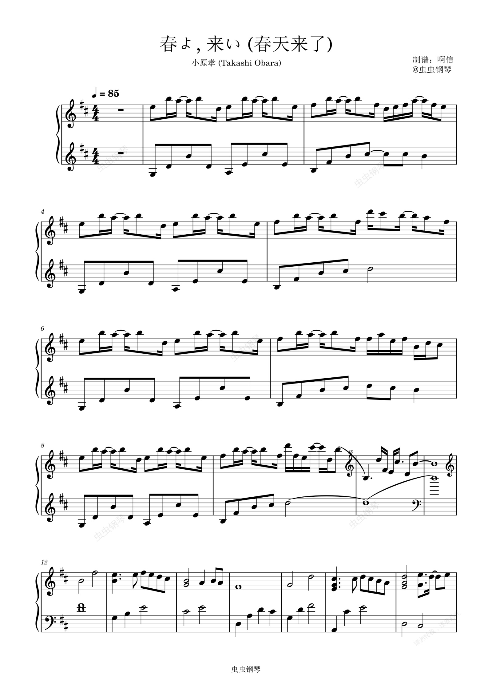 钢琴谱:原版 春よ, 来い (春天来了)  啊信编配