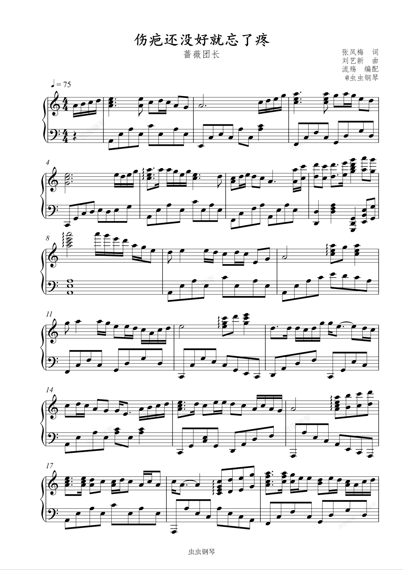 钢琴谱:伤疤还没好就忘了疼(C调版)
