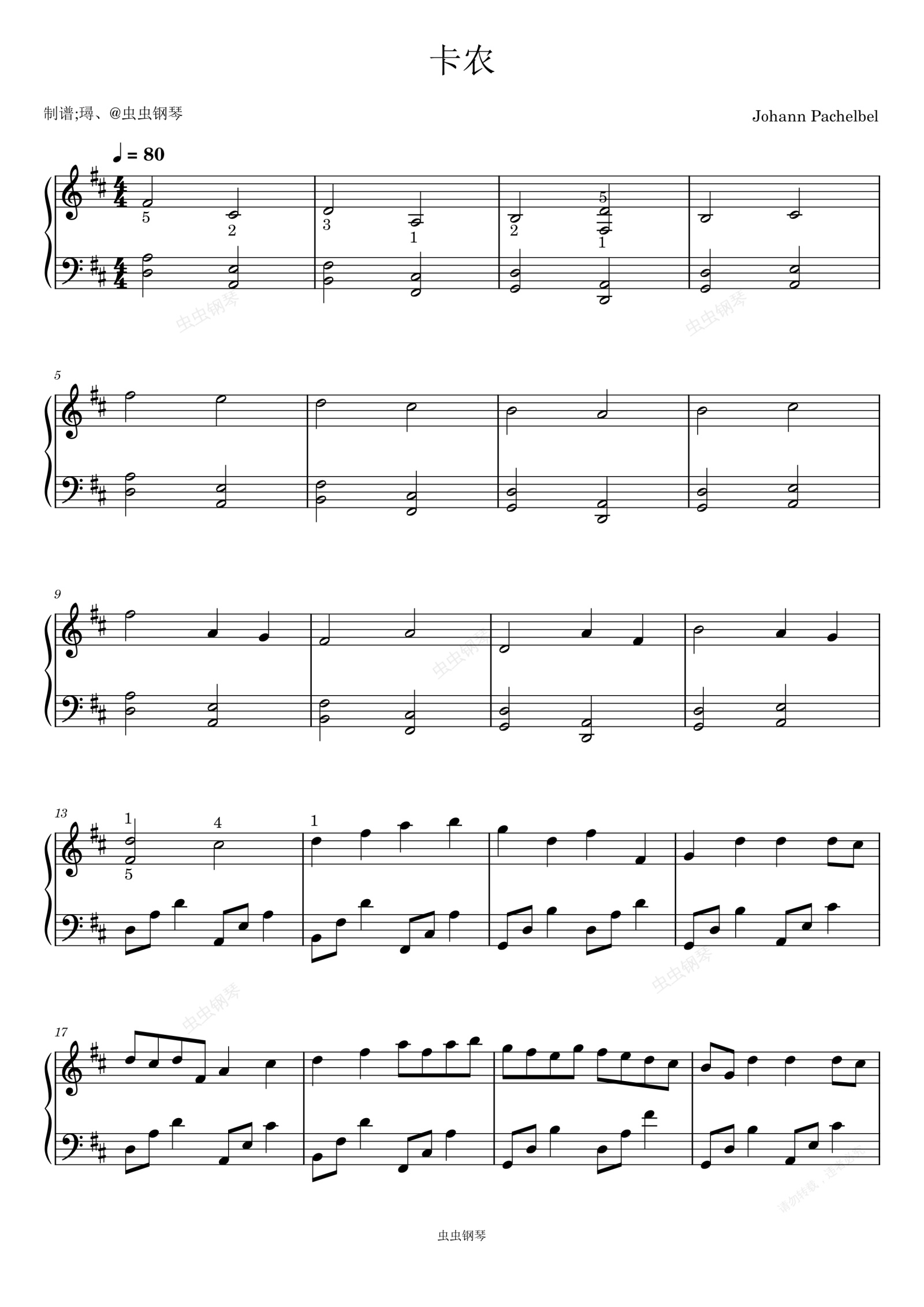 钢琴谱:D大调卡农