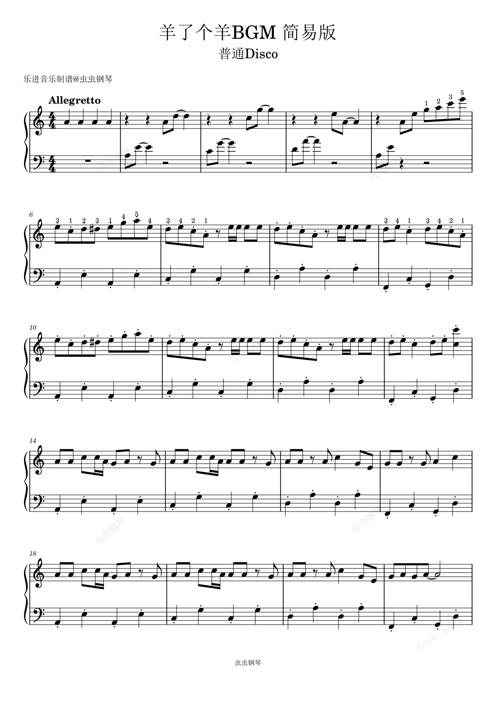 钢琴谱:羊了个羊 C调简易无华彩 (普通Disco)