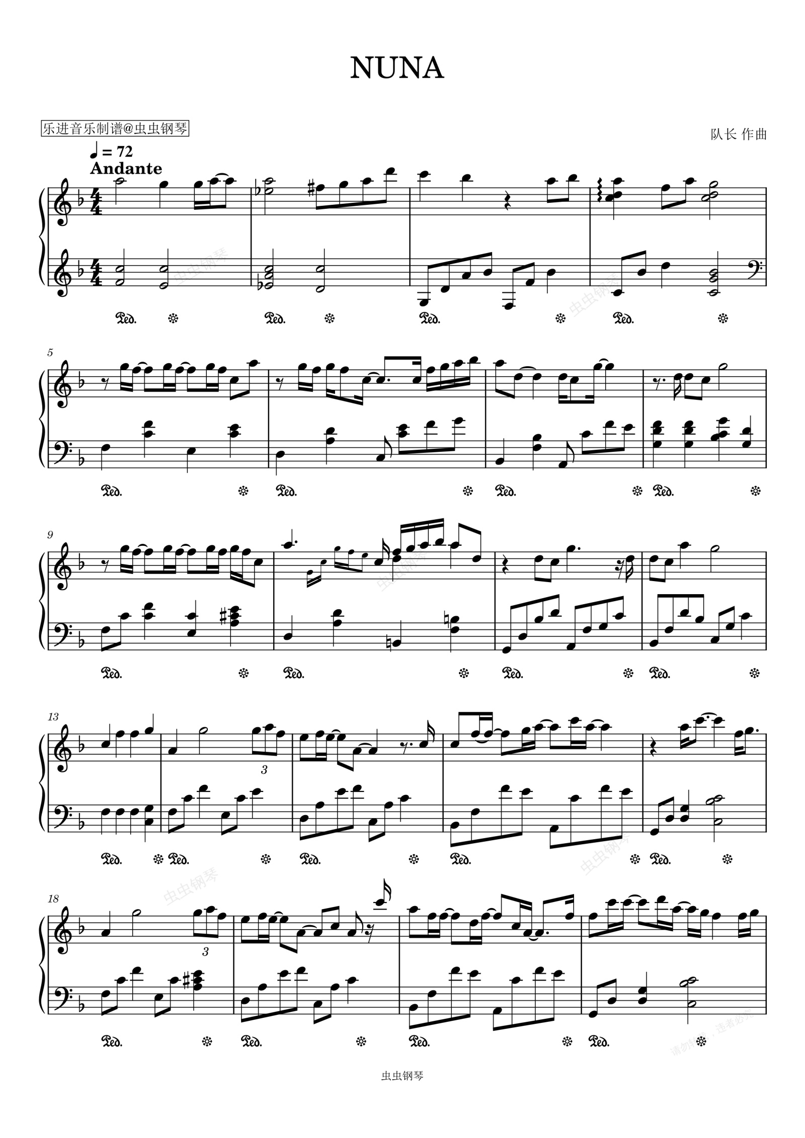 钢琴谱:《NUNA》队长