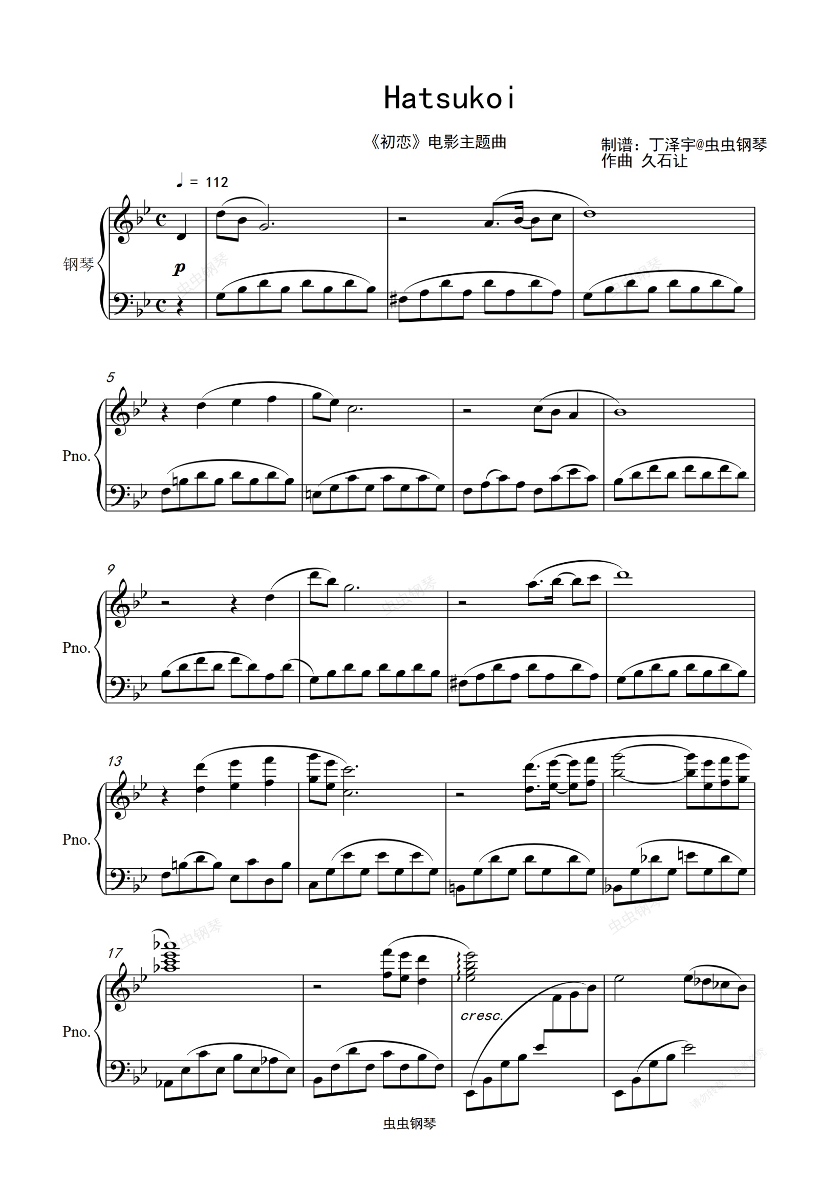 钢琴谱:Hatsukoi 久石让