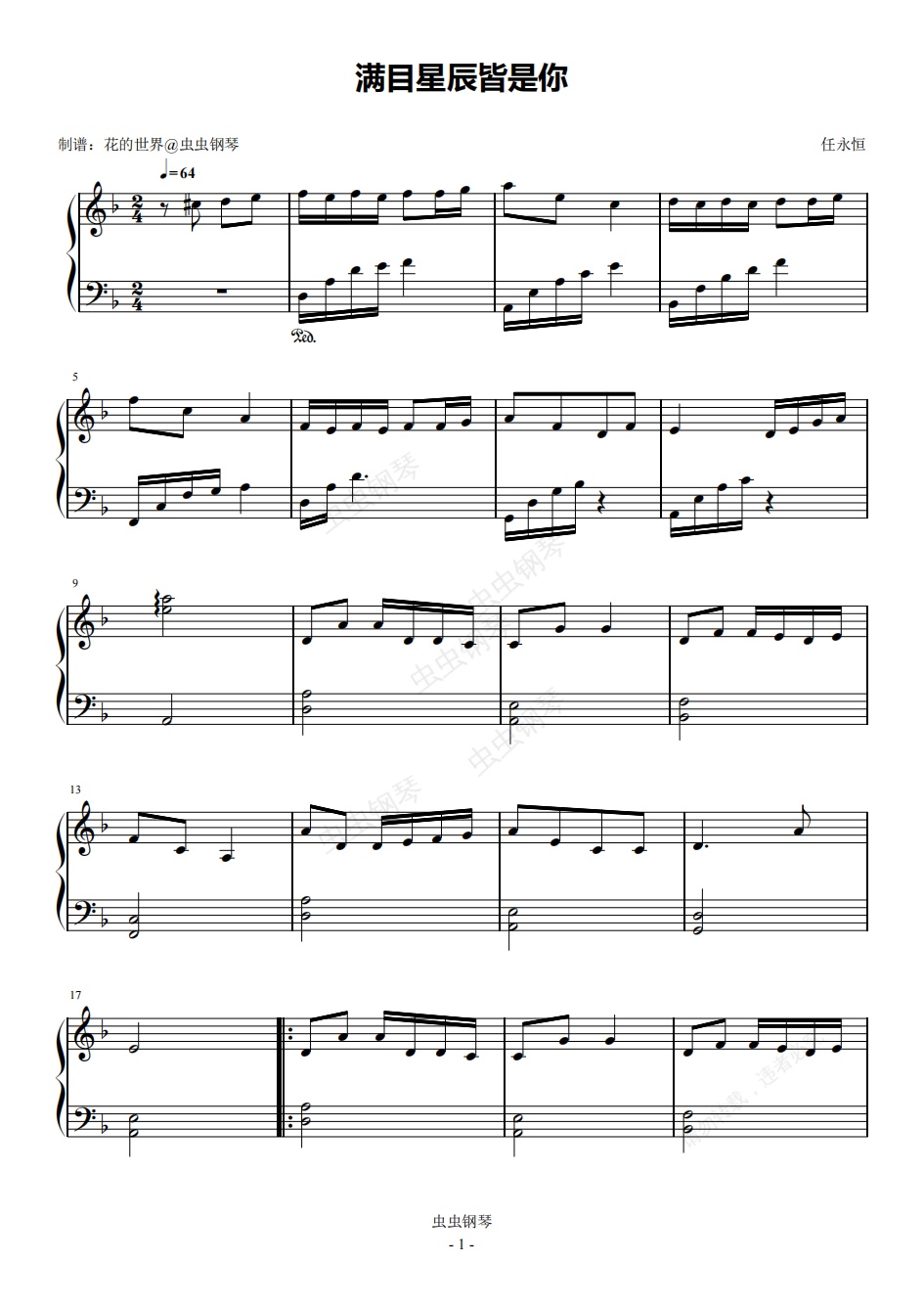 钢琴谱:满目星辰皆是你 原调简易版 LKer林柯