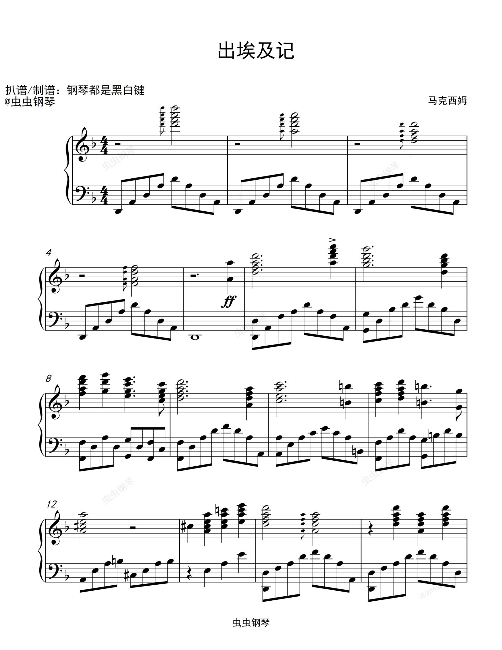 钢琴谱:《出埃及记》Exodus-马克西姆 【宝藏级纯音乐】