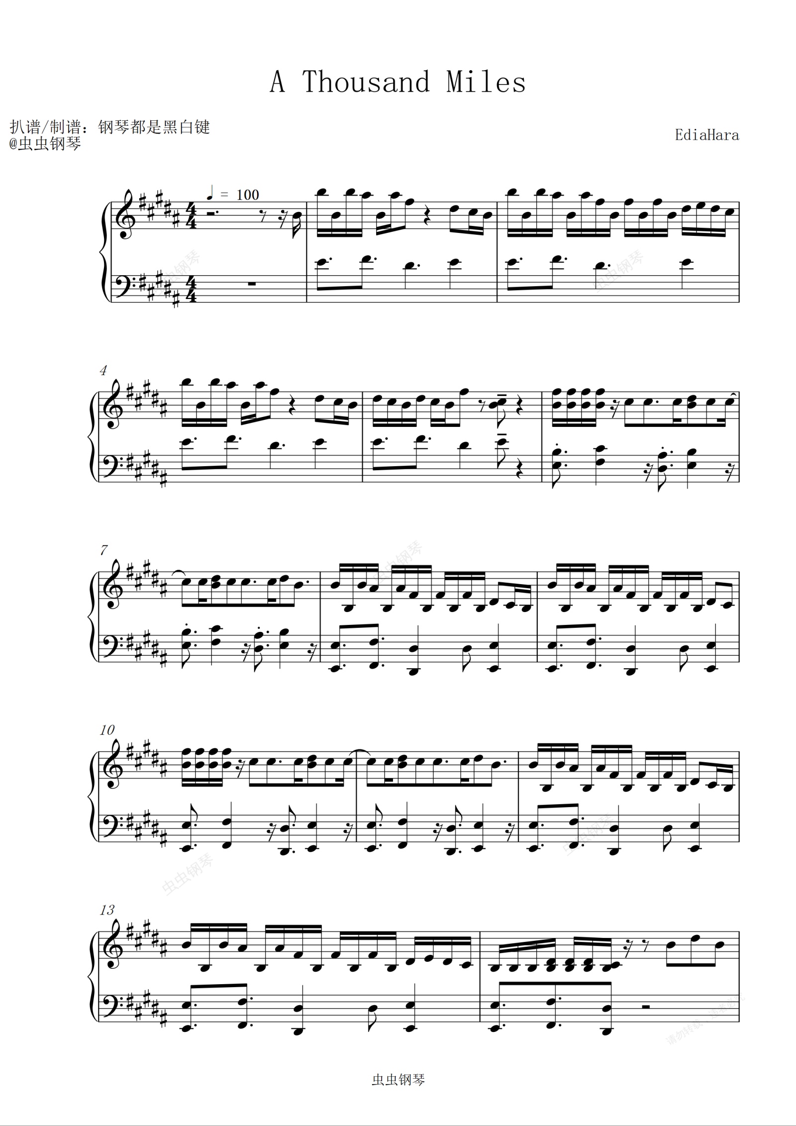 钢琴谱:曾火爆全网的《A Thousand Miles》【宝藏级纯音乐】