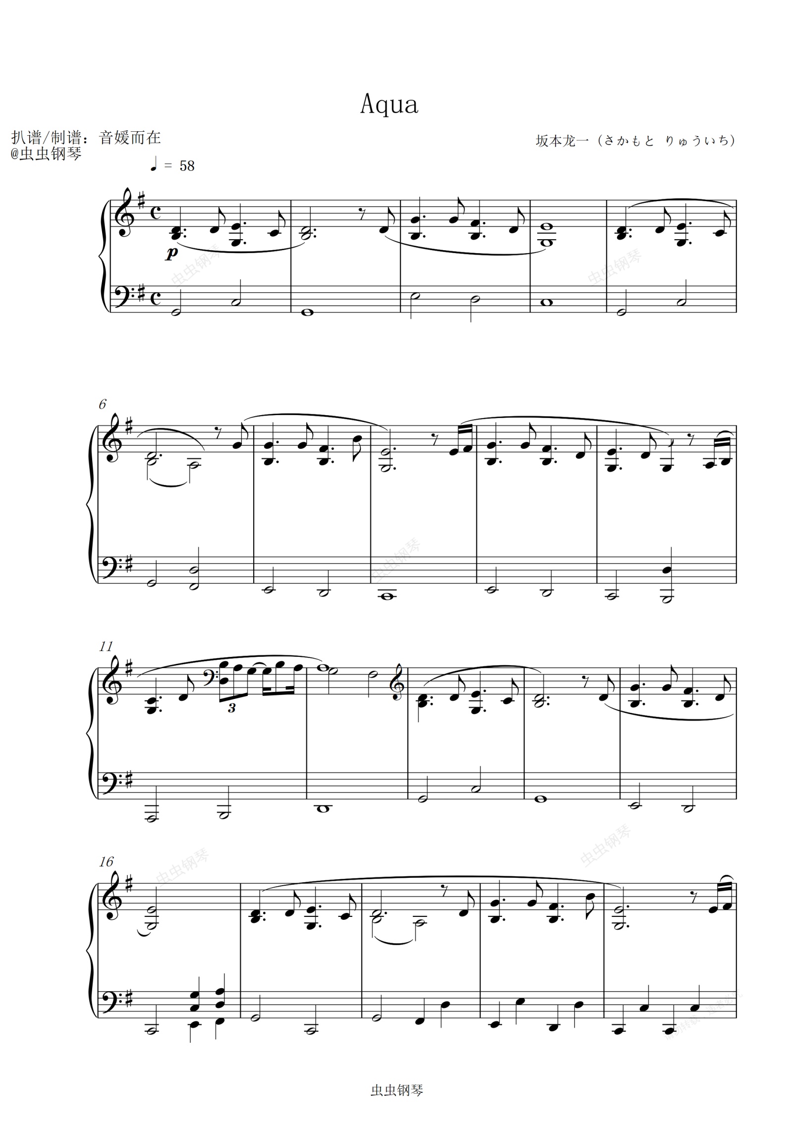 钢琴谱:Anna - 坂本龙一 【美丽静心的音乐/轻松的学习】
