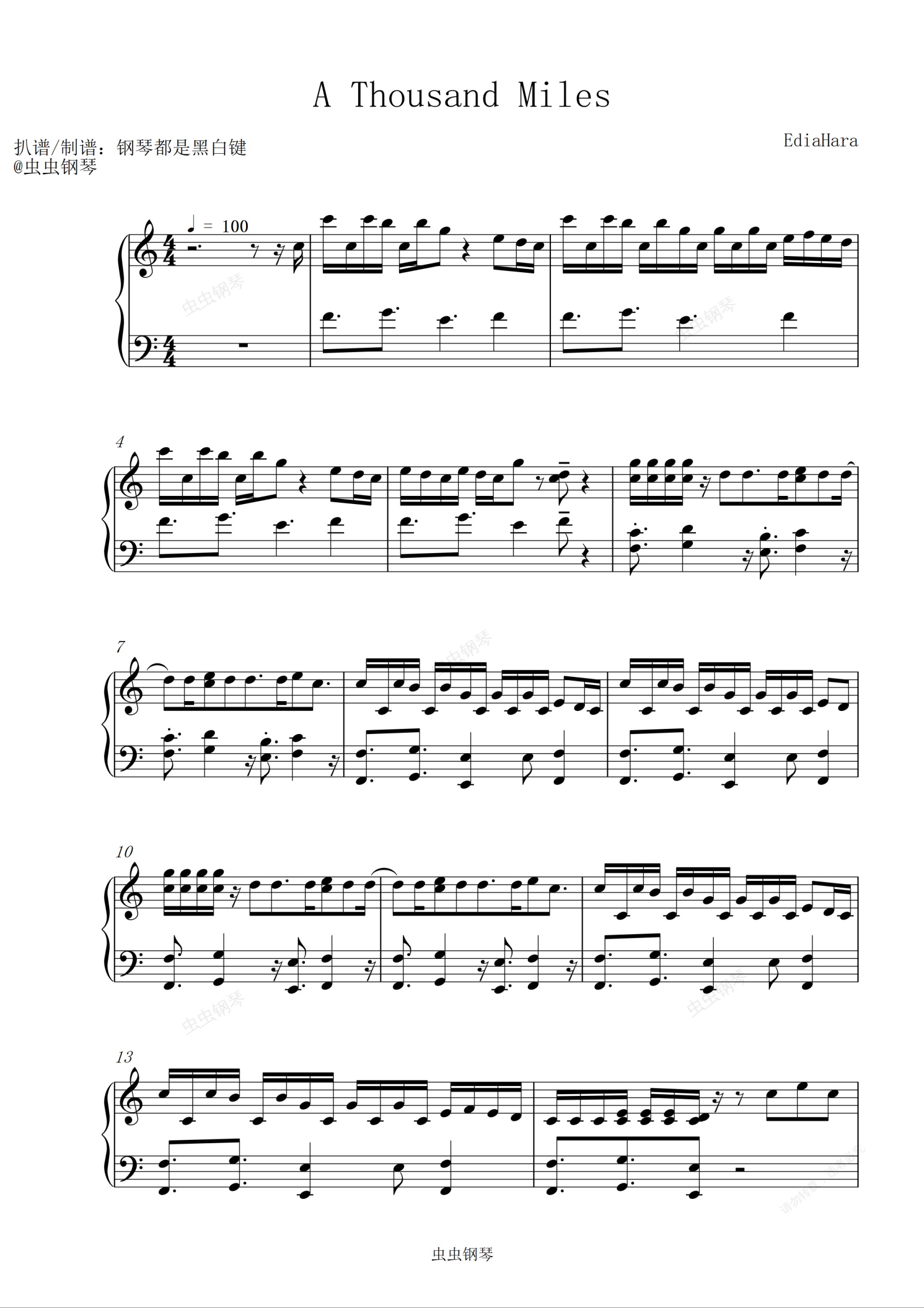钢琴谱:曾火爆全网的《A Thousand Miles》C调【宝藏级纯音乐】