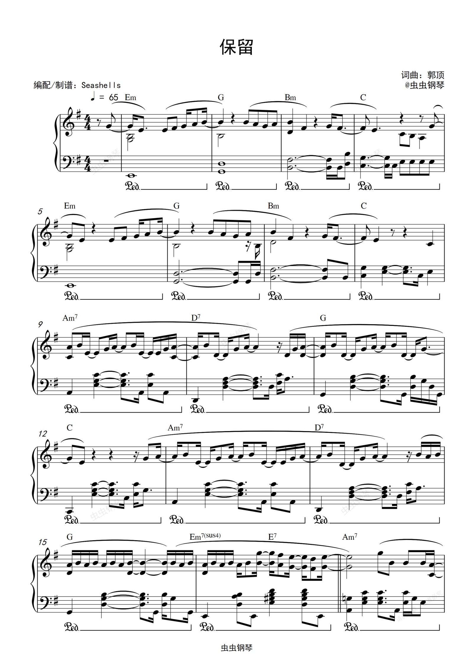 钢琴谱:郭顶-《保留》精编钢琴独奏