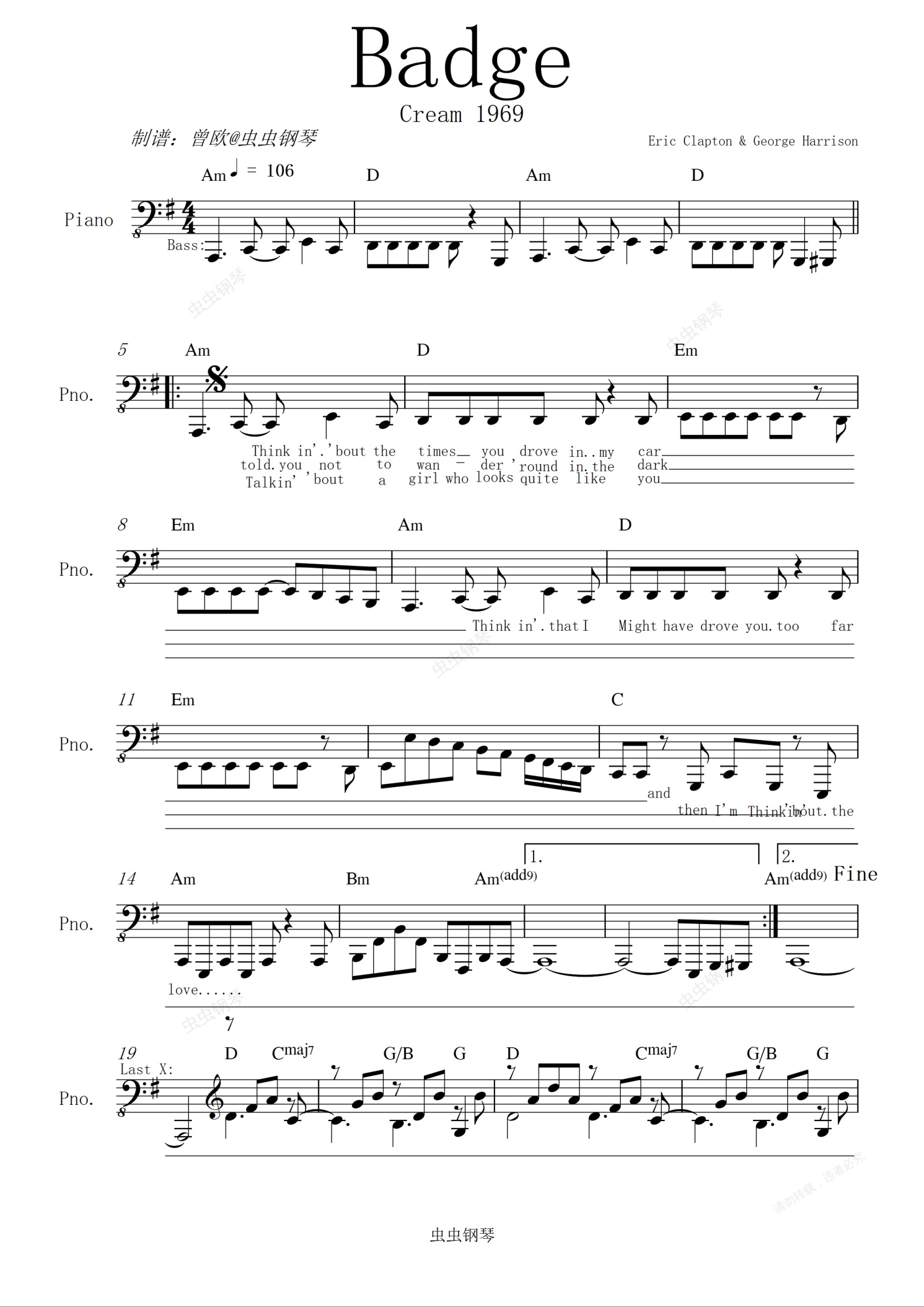 Badge - Eric Clapton (免费易弹带歌词)