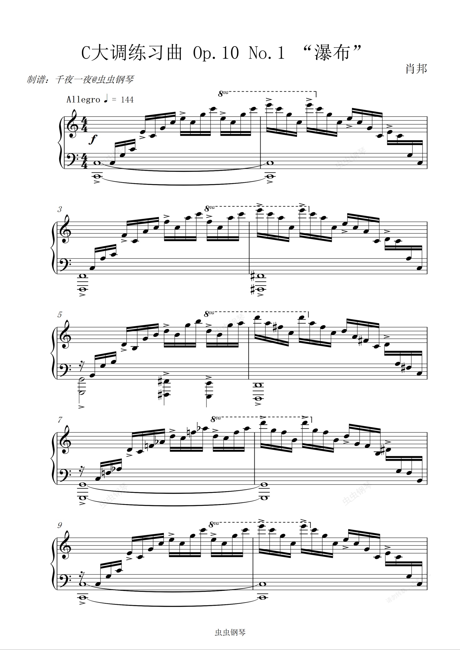 钢琴谱:C大调练习曲 Op 10 No 1 “瀑布” 肖邦