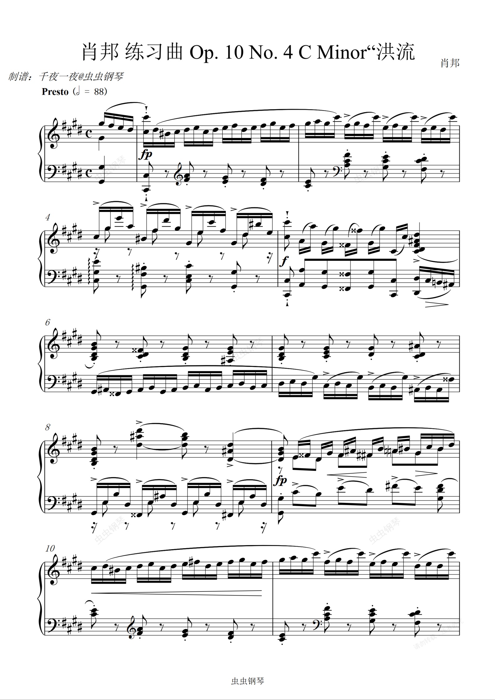 钢琴谱:肖邦 练习曲 Op 10 No 4 C Minor“洪流