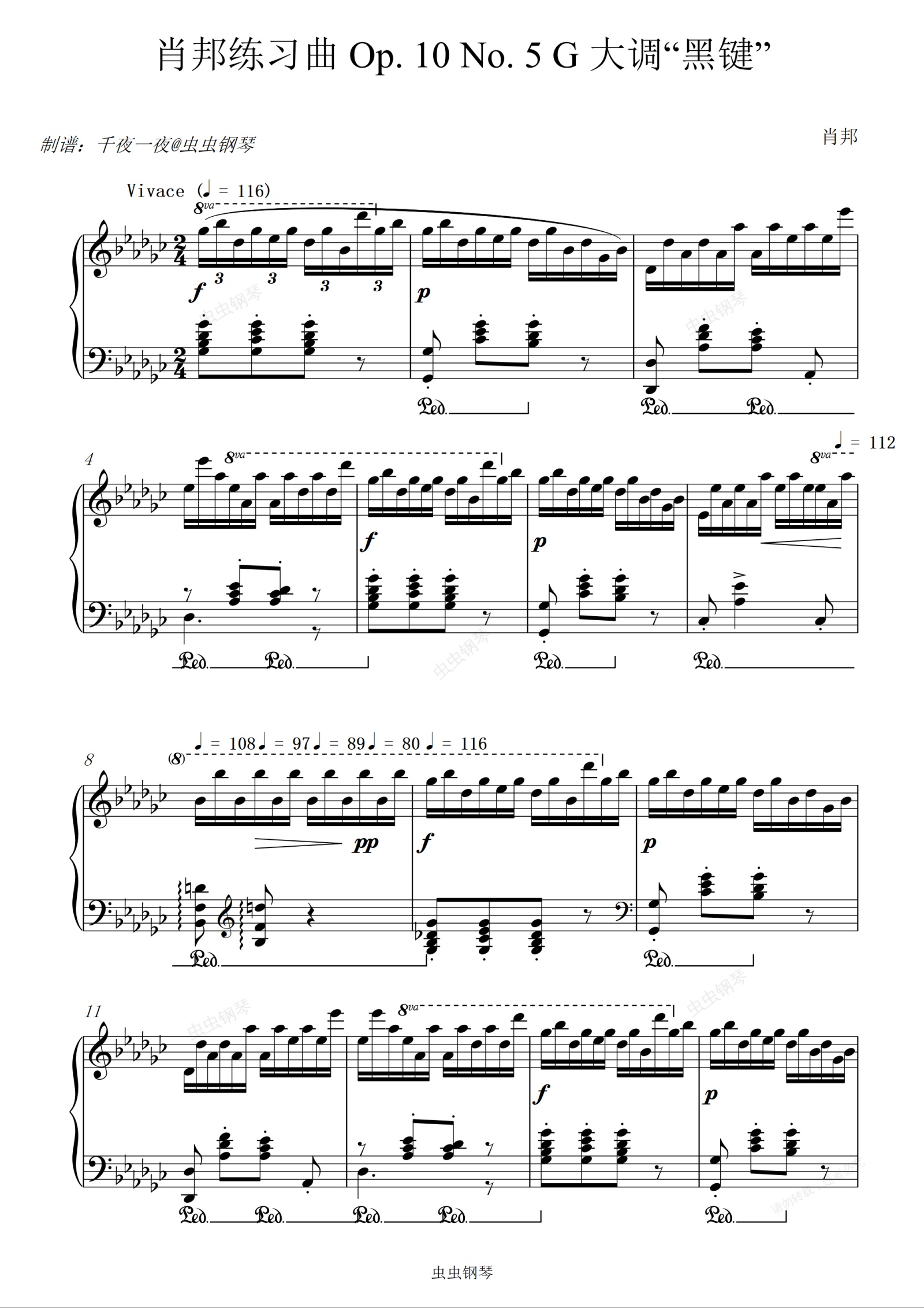 钢琴谱:肖邦练习曲 Op 10 No 5 G 大调“黑键”