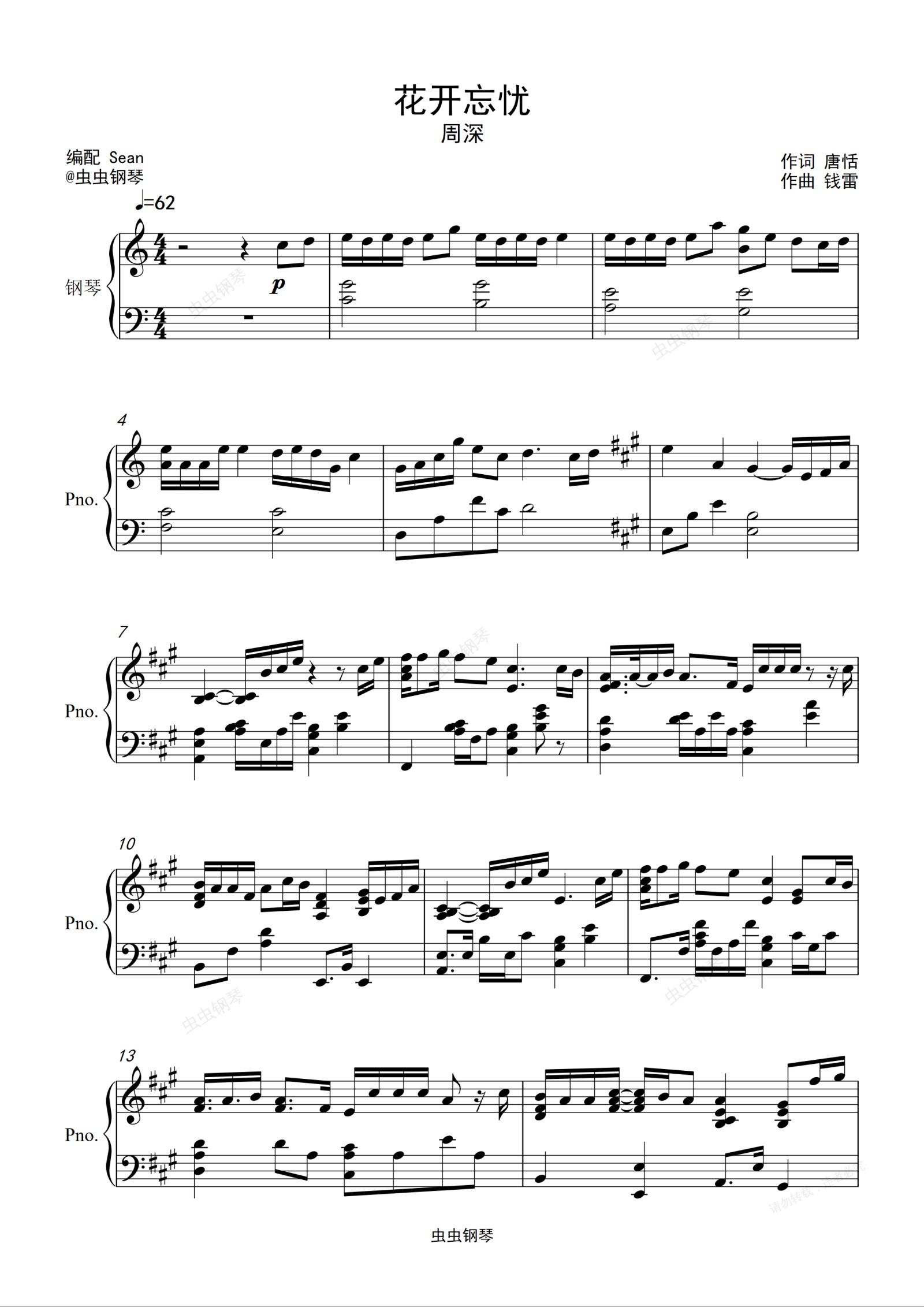 钢琴谱:周深《花开忘忧》C调版-Sean编配