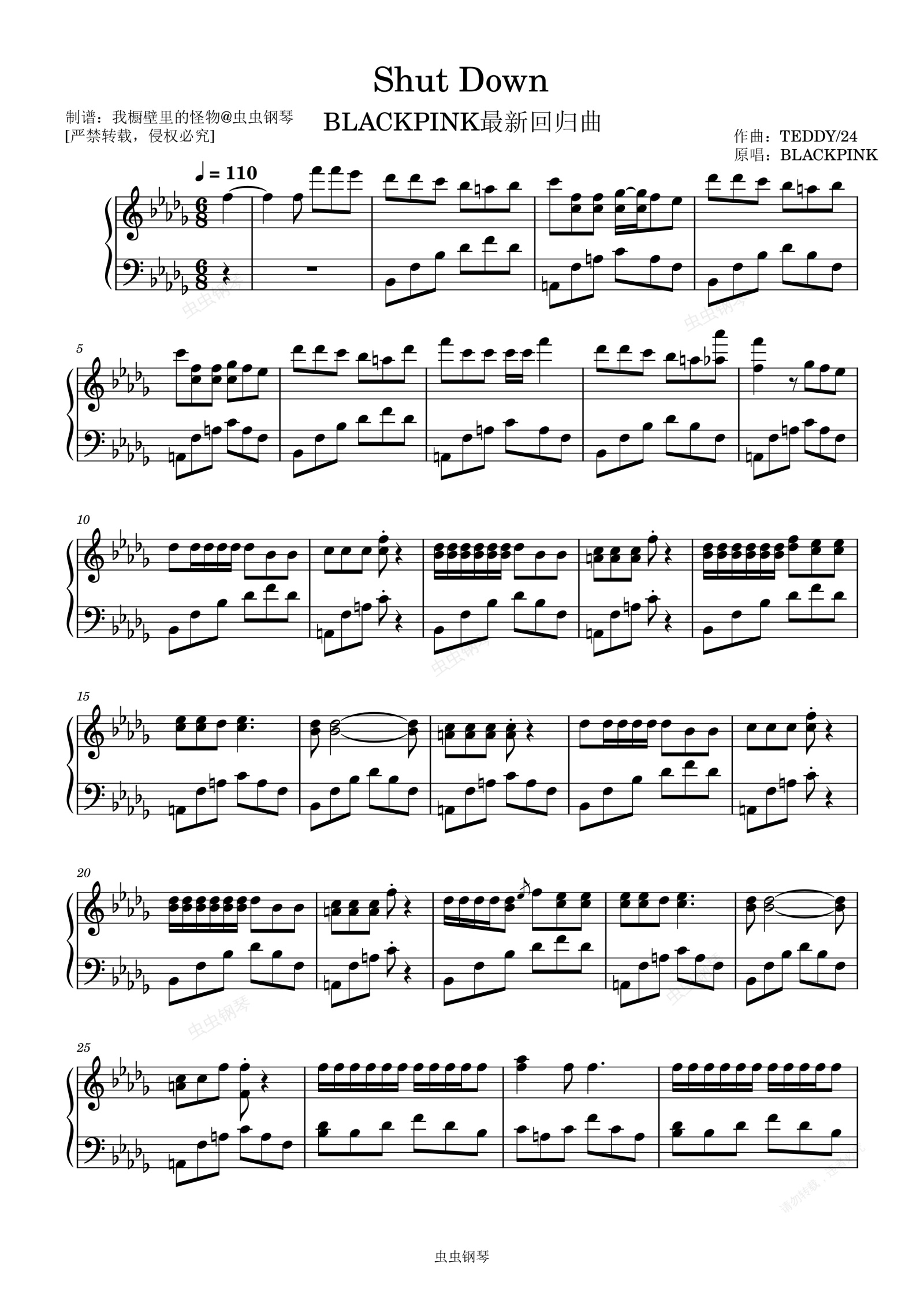 钢琴谱:《Shut Down》BLACKPINK回归曲