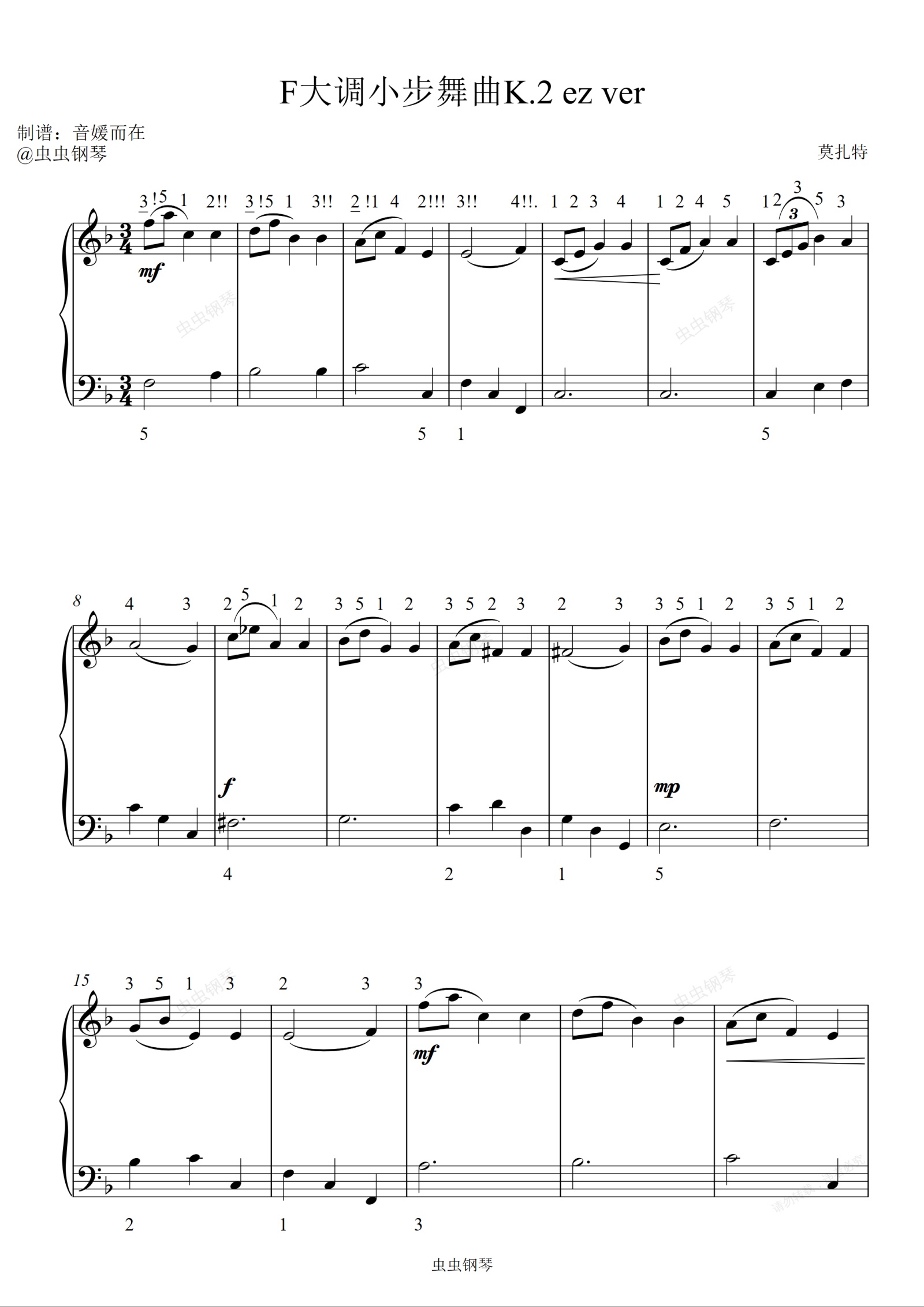钢琴谱:莫扎特 - F大调小步舞曲K 2 ez ver