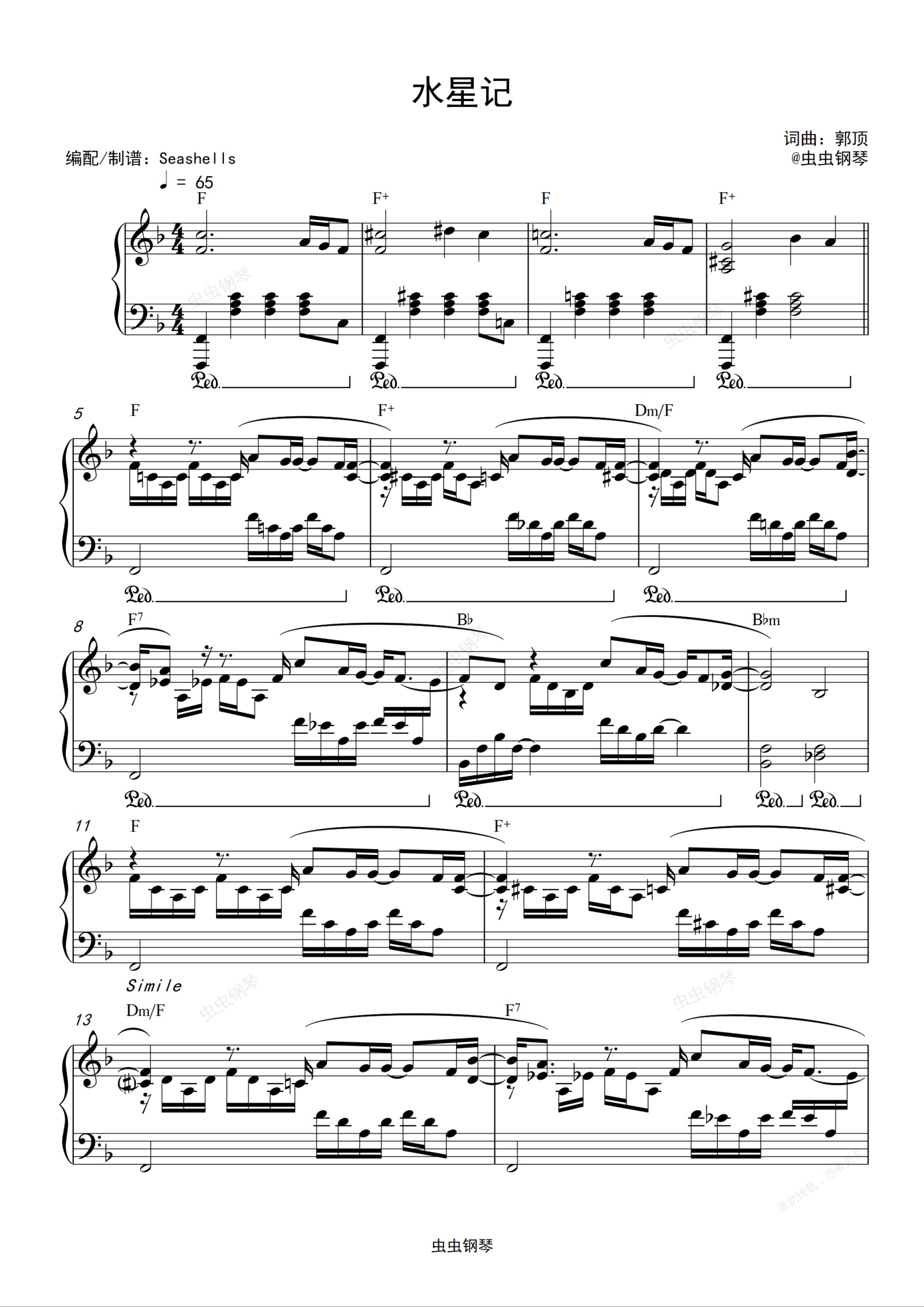 钢琴谱:郭顶-《水星记》精编钢琴独奏