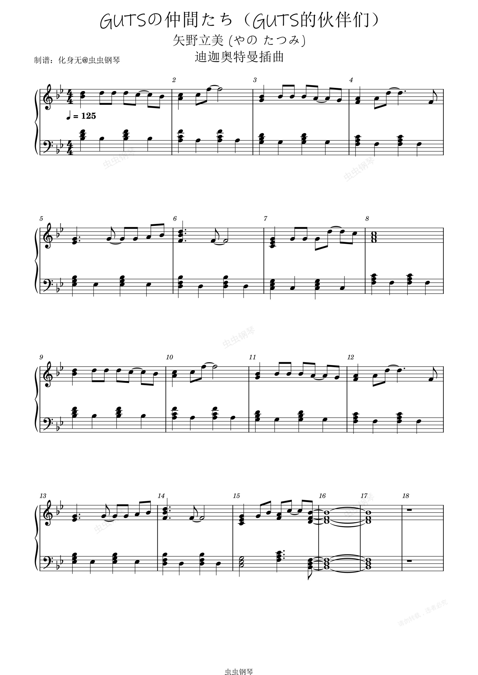 钢琴谱:GUTSの仲間たち(GUTS的伙伴们)迪迦奥特曼插曲