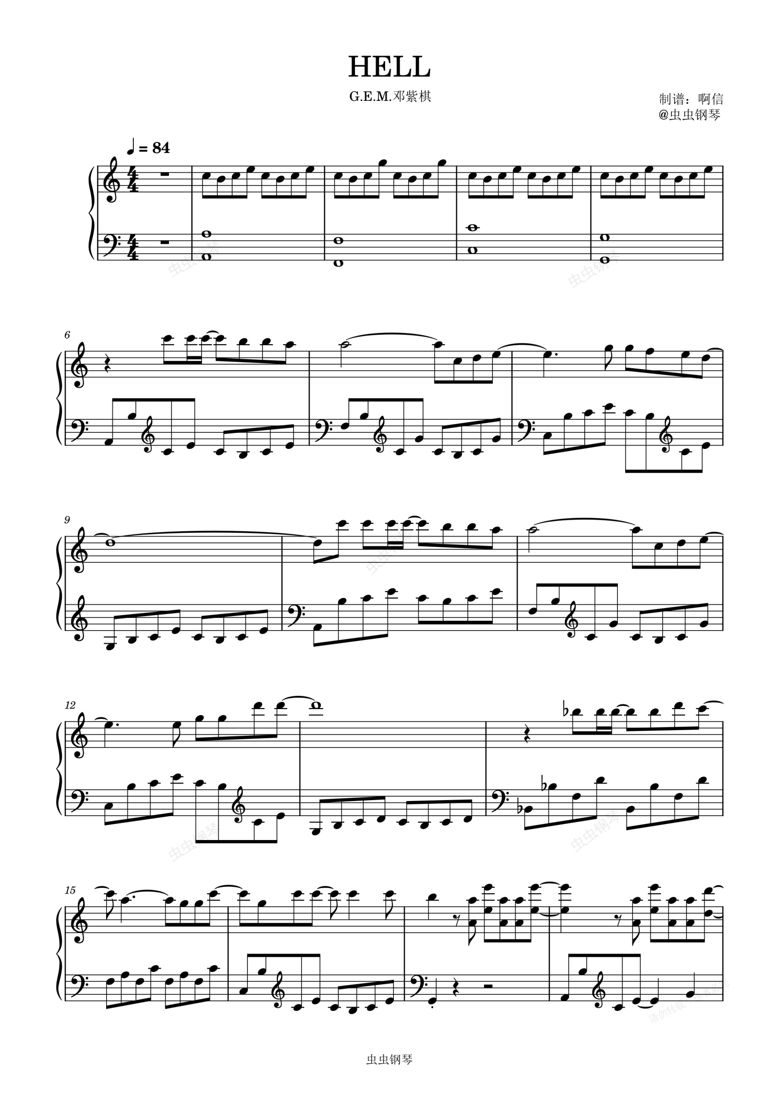 钢琴谱:HELL-G.E.M.邓紫棋-C调编配-啊信