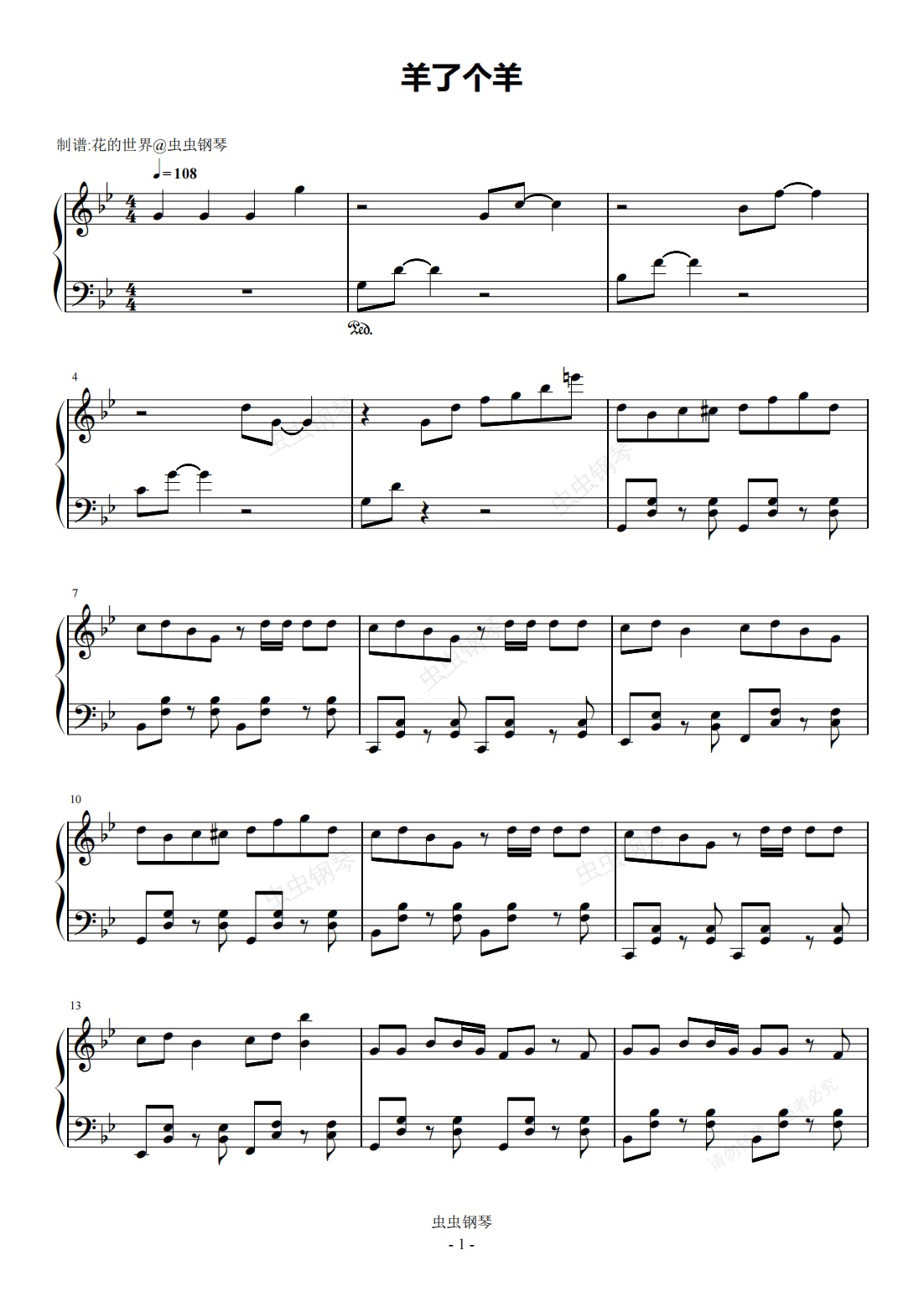 钢琴谱:羊了个羊 原调简易版