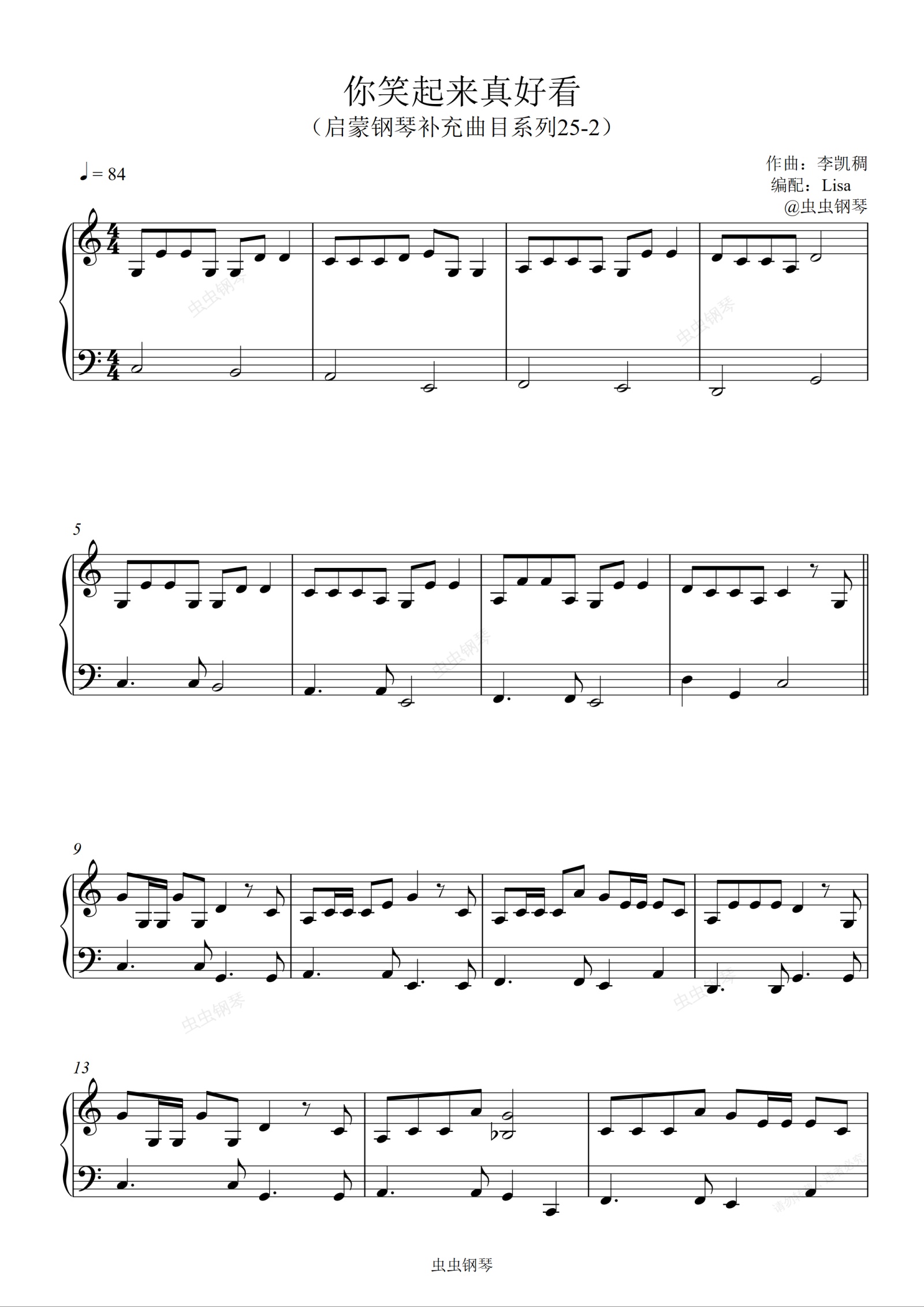 钢琴谱:你笑起来真好看(C调,小汤2水平)