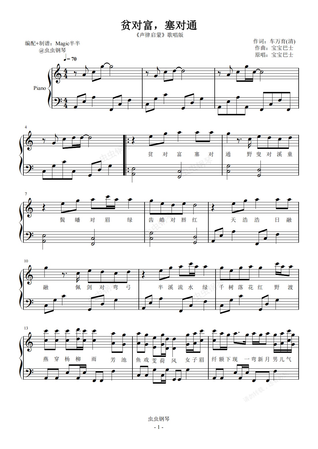 钢琴谱:贫对富塞对通 (国学声律启蒙)