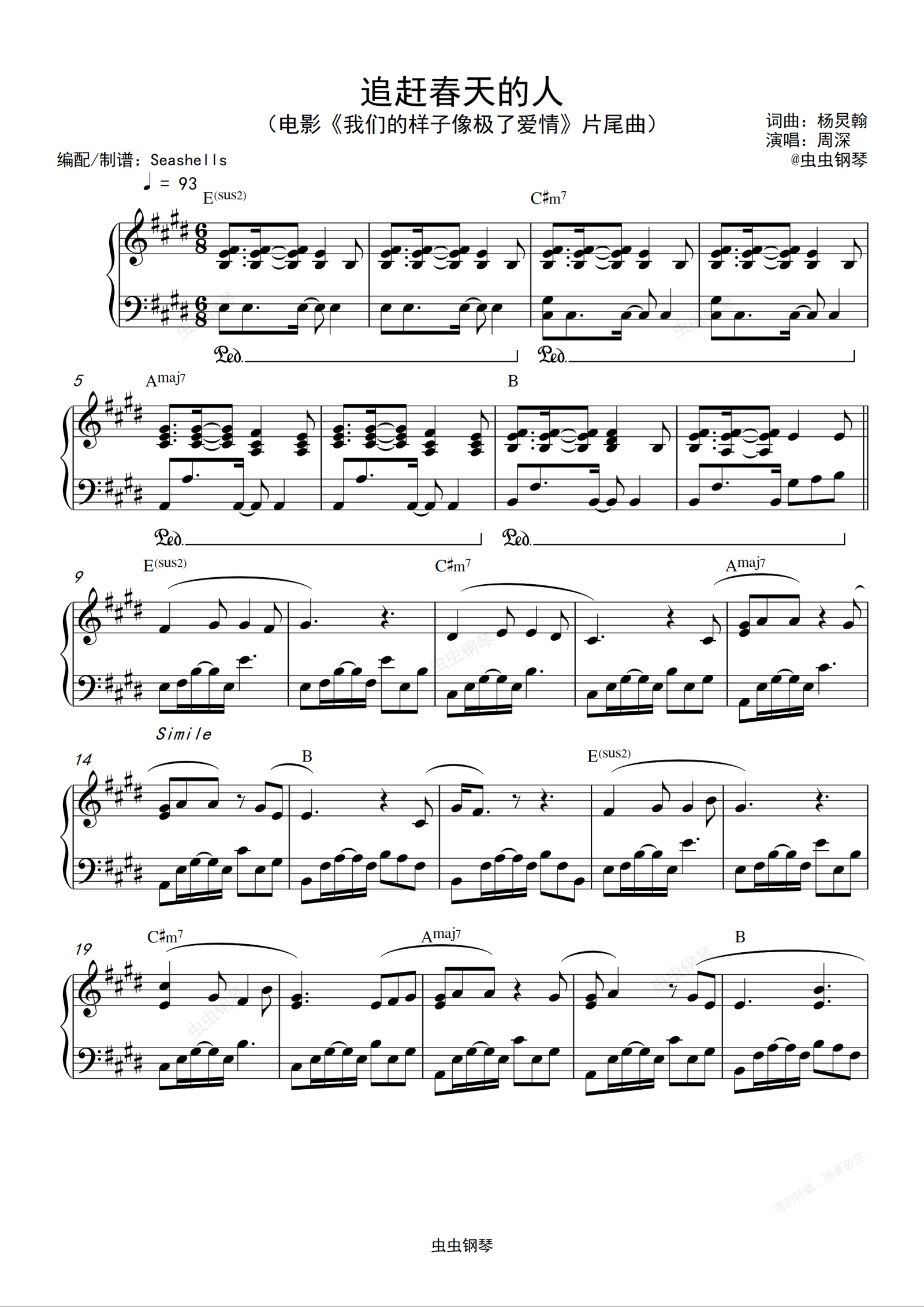 钢琴谱:周深-《追赶春天的人》精编钢琴独奏