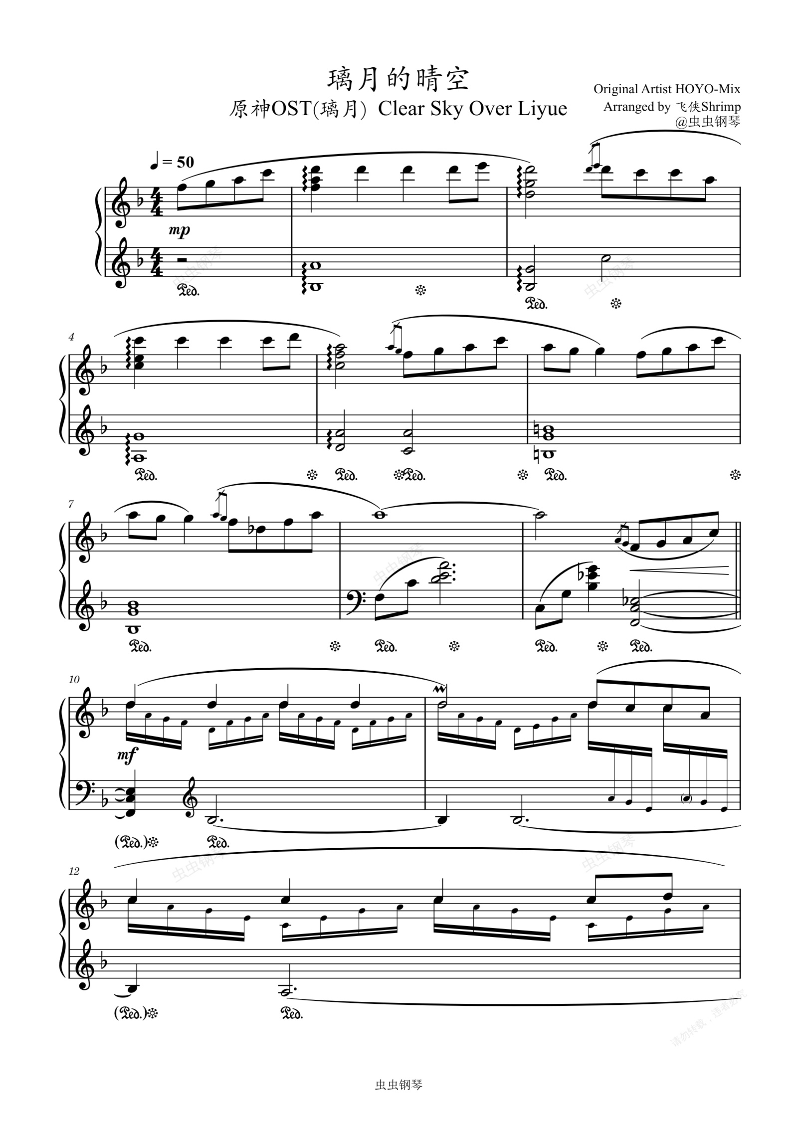 钢琴谱:【原神OST】璃月的晴空|Clear Sky Over Liyue(璃月)