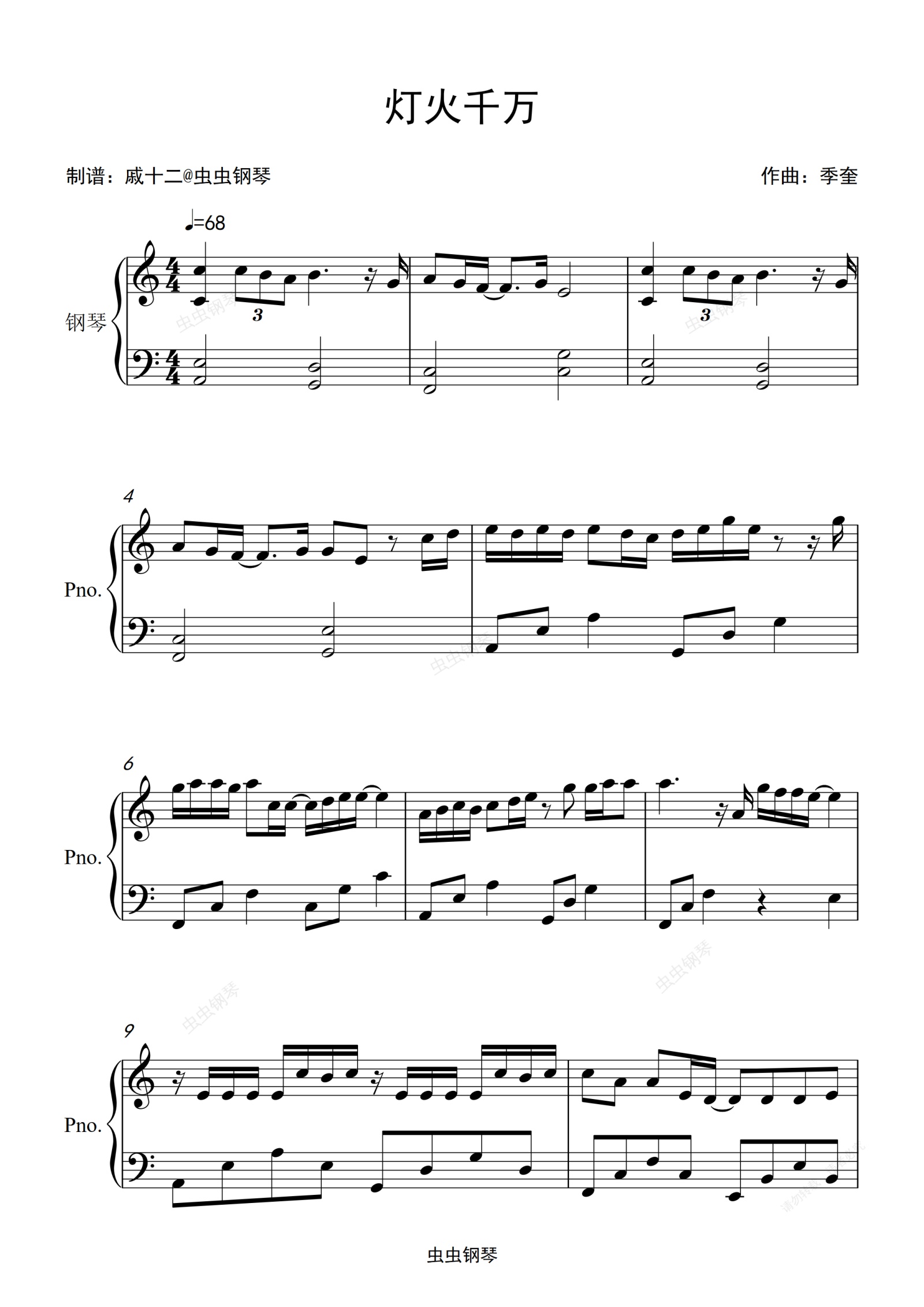 钢琴谱:灯火千万《新神榜:杨戬》主题曲-C调简单版