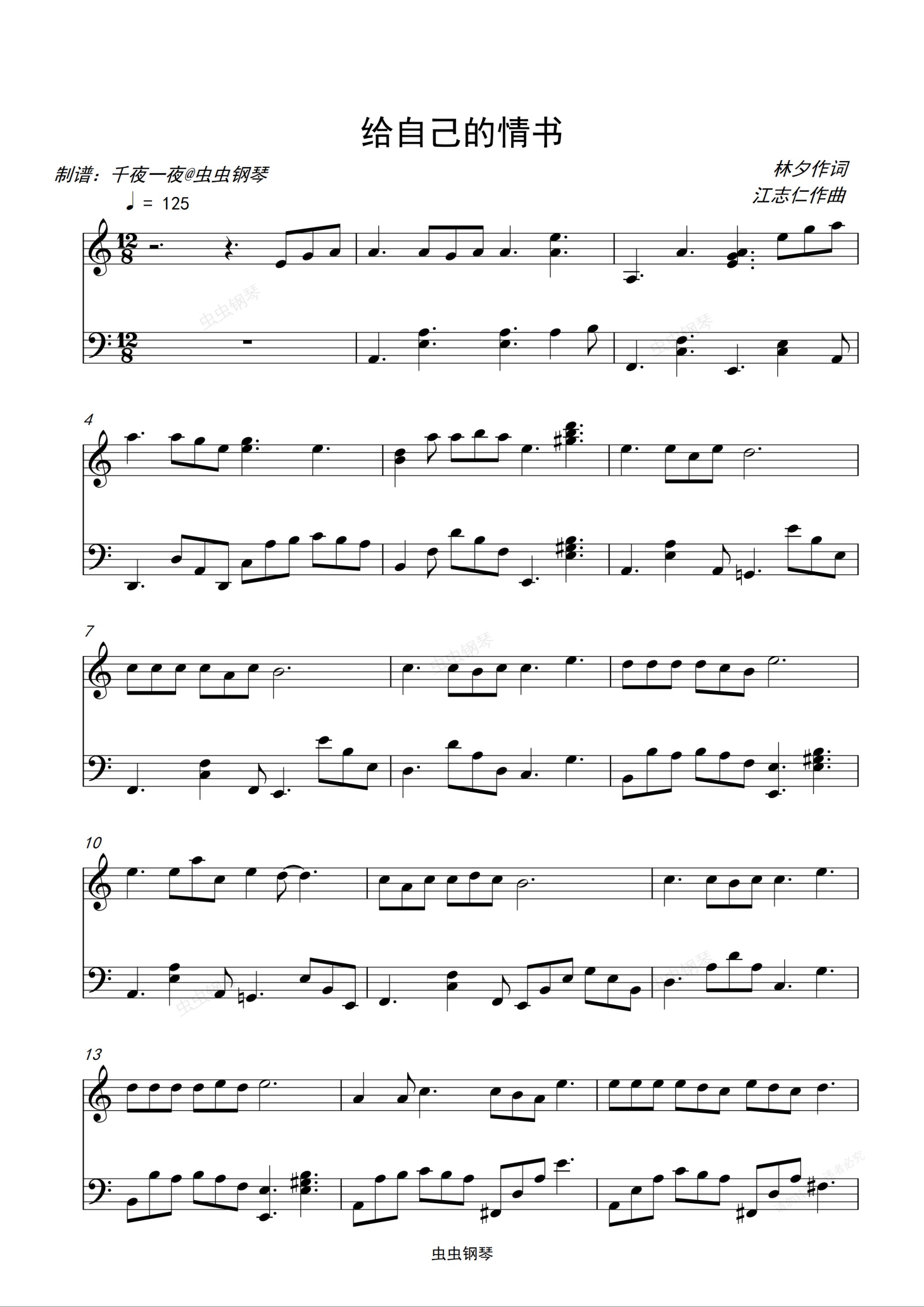 钢琴谱:给自已的情书
